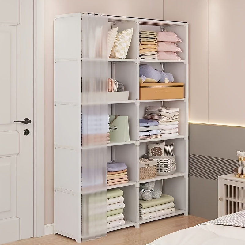Product information for TEMU 2 Door With Hanging Rod And Storage Shelf, Clothes Storage Organizer With Anti-tipping Design For Bedroom, Grey