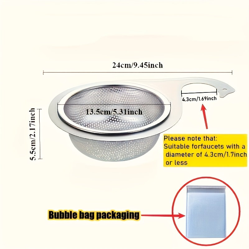 Product information for TEMU 2 Pack Kitchen Sink Strainer, Stainless Steel, Large Wide Rim 4.5" Diameter, Food For Most Sink Drains Basket Strainer
