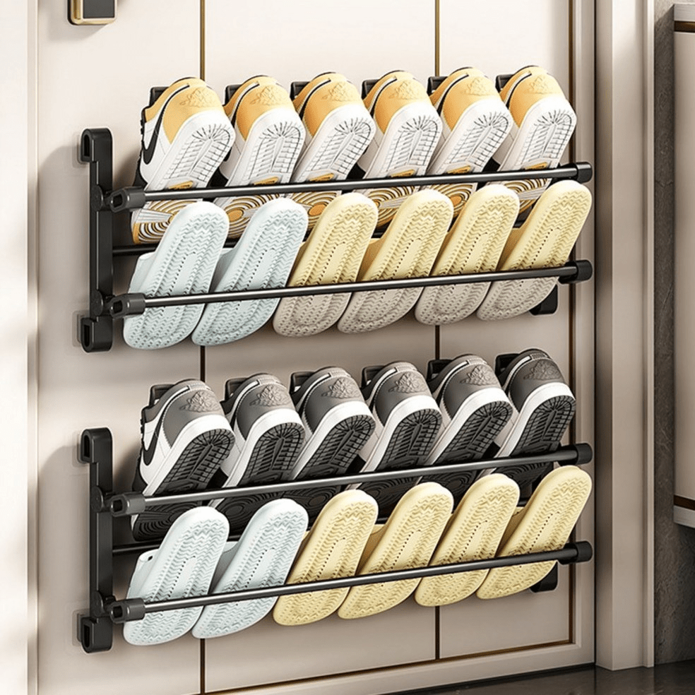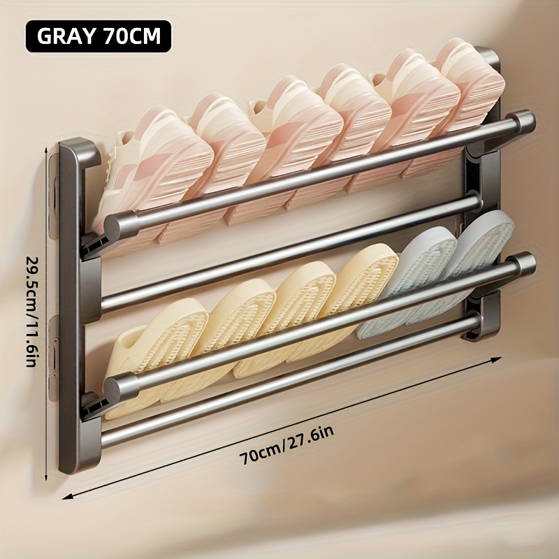TEMU 2 Stück Bohrfreie Klappbare Schuhregale, Türmontierter Schuhaufbewahrungsorganizer für Badezimmer und Eingangsbereich, Wandmontierte Mehrschichtige Schuhlagerung
