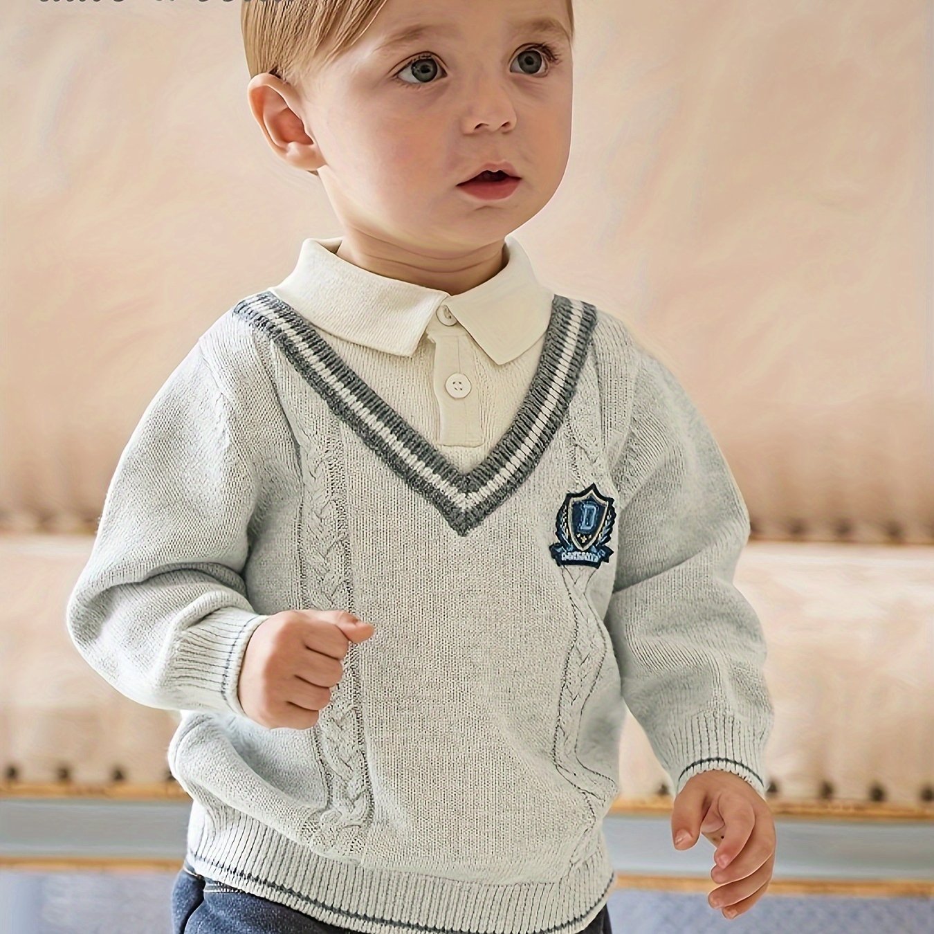 Product information for TEMU 20041 Boys' Spring/autumn New Embroidered Fox Pattern Pullover Sweater Long Sleeve Knitwear