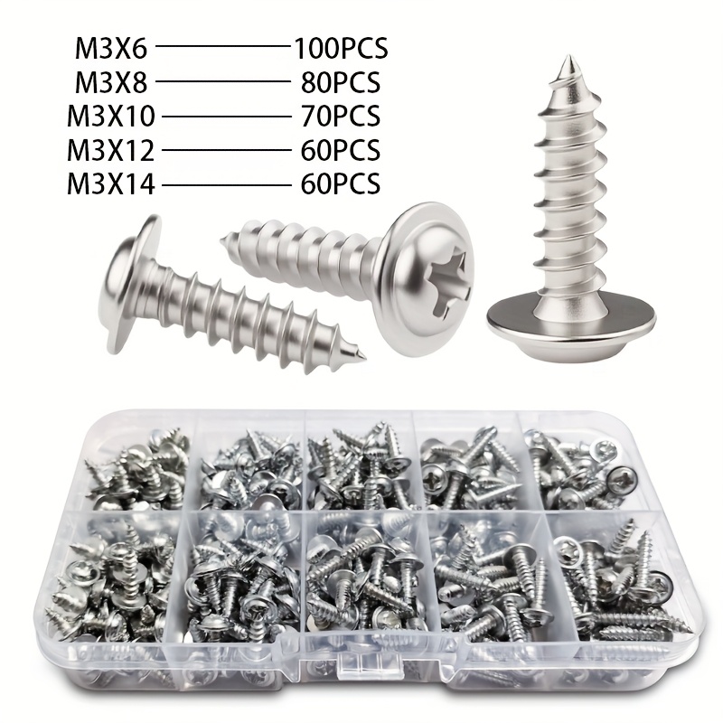 Product information for TEMU 200pcs/box Black High-strength M3.5 Countersunk Head Self Tapping Screws Gypsum Board Screws Light Steel Woodworking Self Tapping Screws 0.63inch