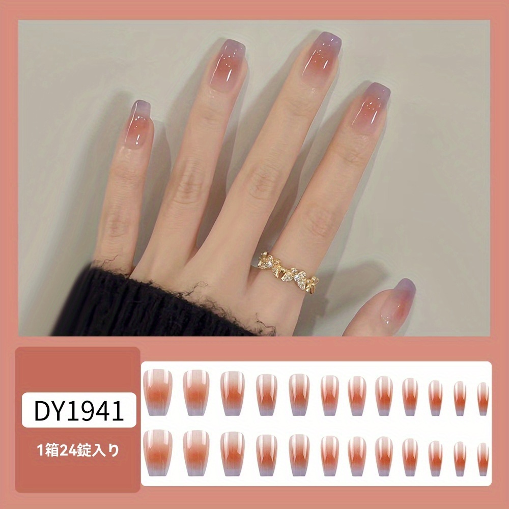 Product information for TEMU 216pcs Press-on Nail Set, Mixed Color Medium Length, Glossy Finish With Stripe & Gradient Patterns, Reusable Fake Nails