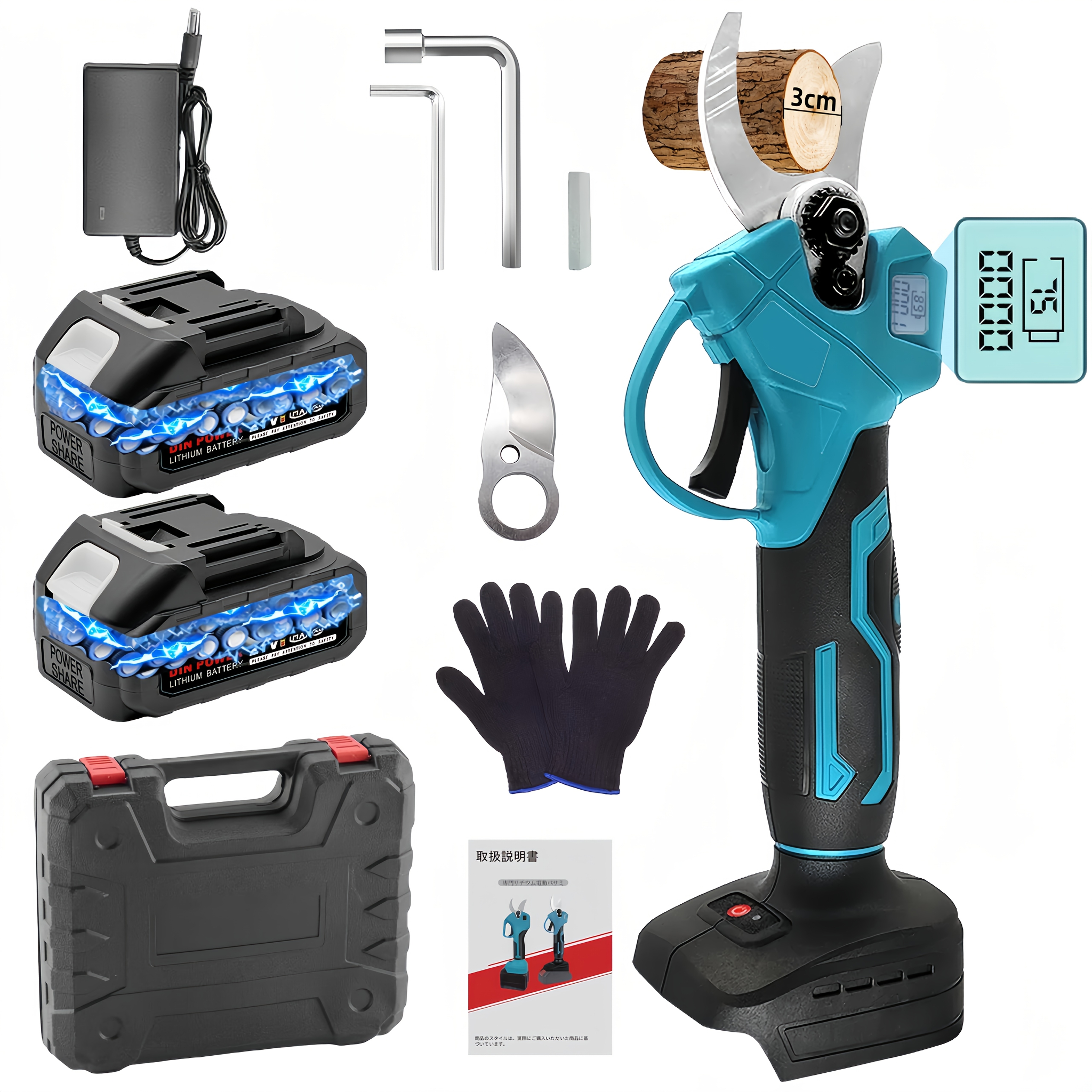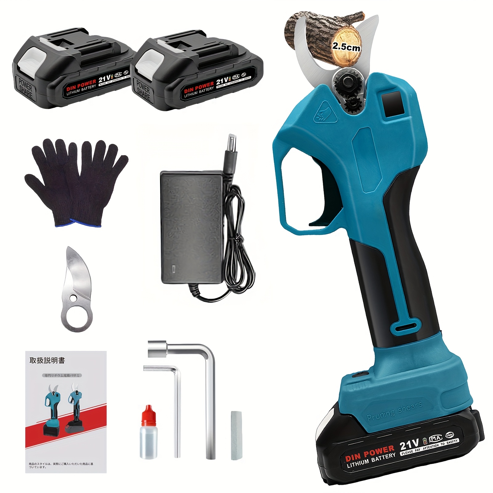 TEMU 21v Cordless Electric Pruning Shears Kit For Pruning Trees And Shrubs And Fruit Trees, 28mm Garden Electric Branch Cutters Battery Branch Tree Pruner With 2pcs Rechargeable Lithium Battery