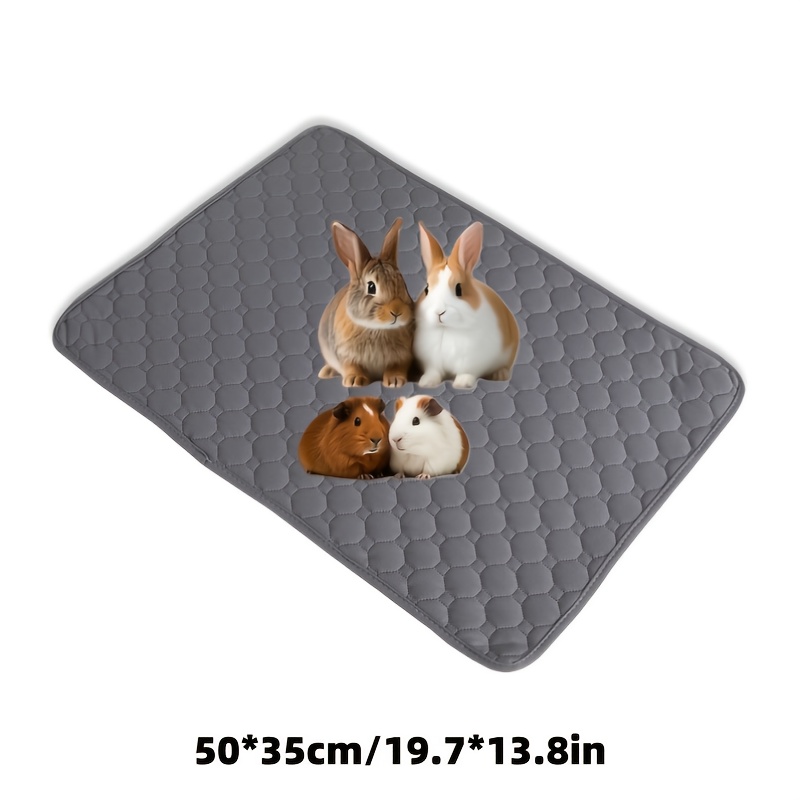 TEMU 2pcs Floral Print Washable Guinea Pig Cage Mats - Waterproof, Reusable, Absorbent Bedding Liners For Small Animals Like Rabbits & Hamsters, Grey With Pink Flowers