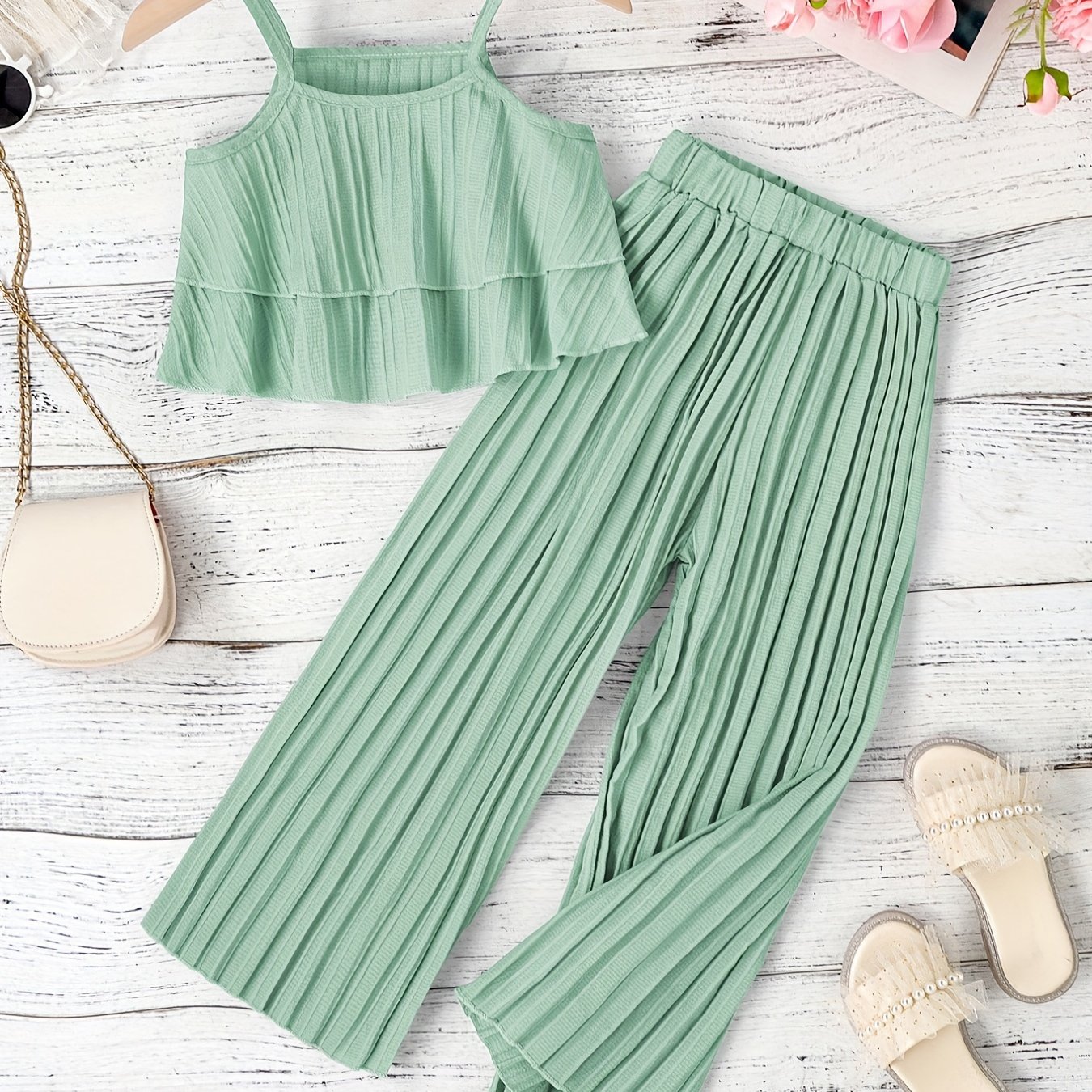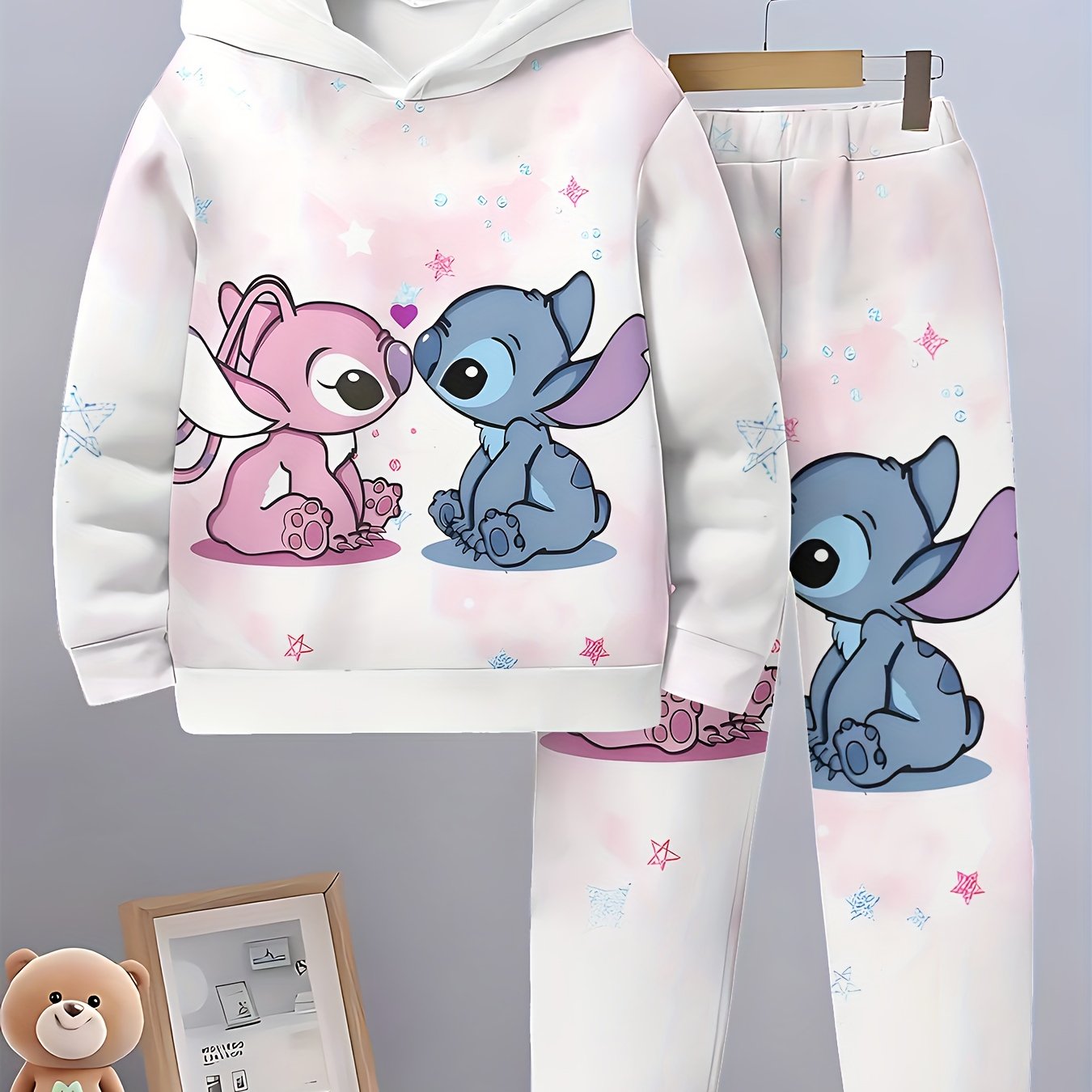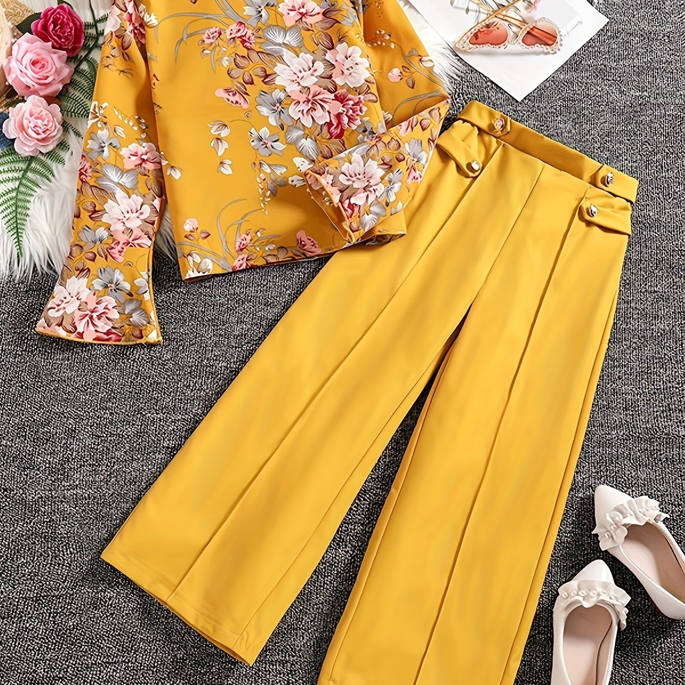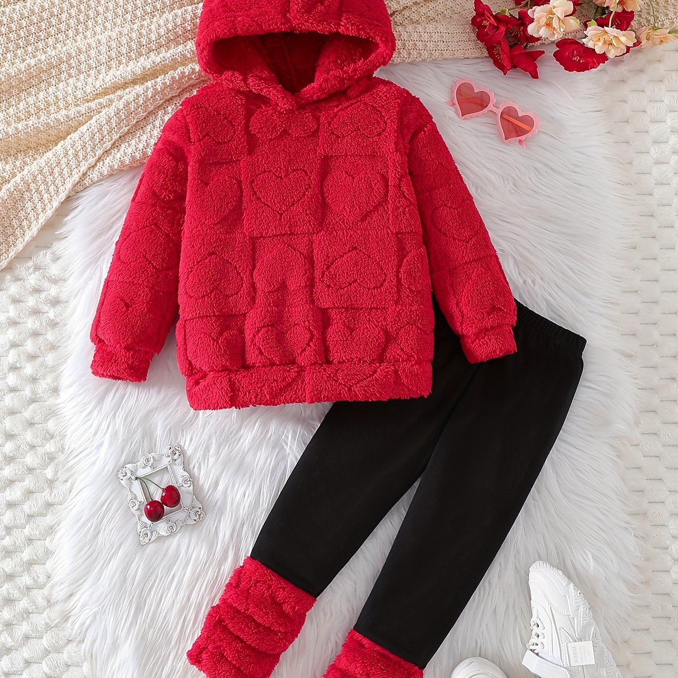 TEMU 2pcs Girls' Long Pants Set: Spring/autumn Fashion Floral Print Leggings And Hooded Pullover Sweatshirt Outfit For Kids, Outdoor