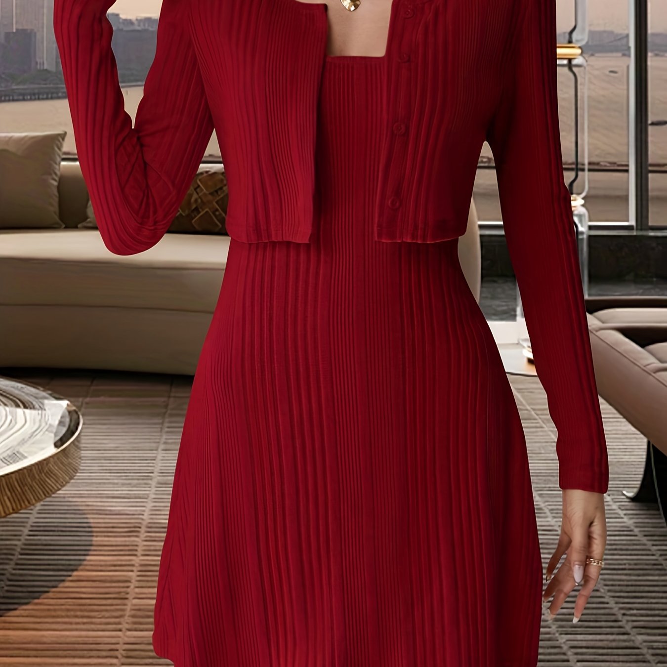 TEMU 2pcs Heart Neckline Bodycon Dress And Mini Skirt Set, Suitable For Dates And Valentine's Day Sexy Outfit