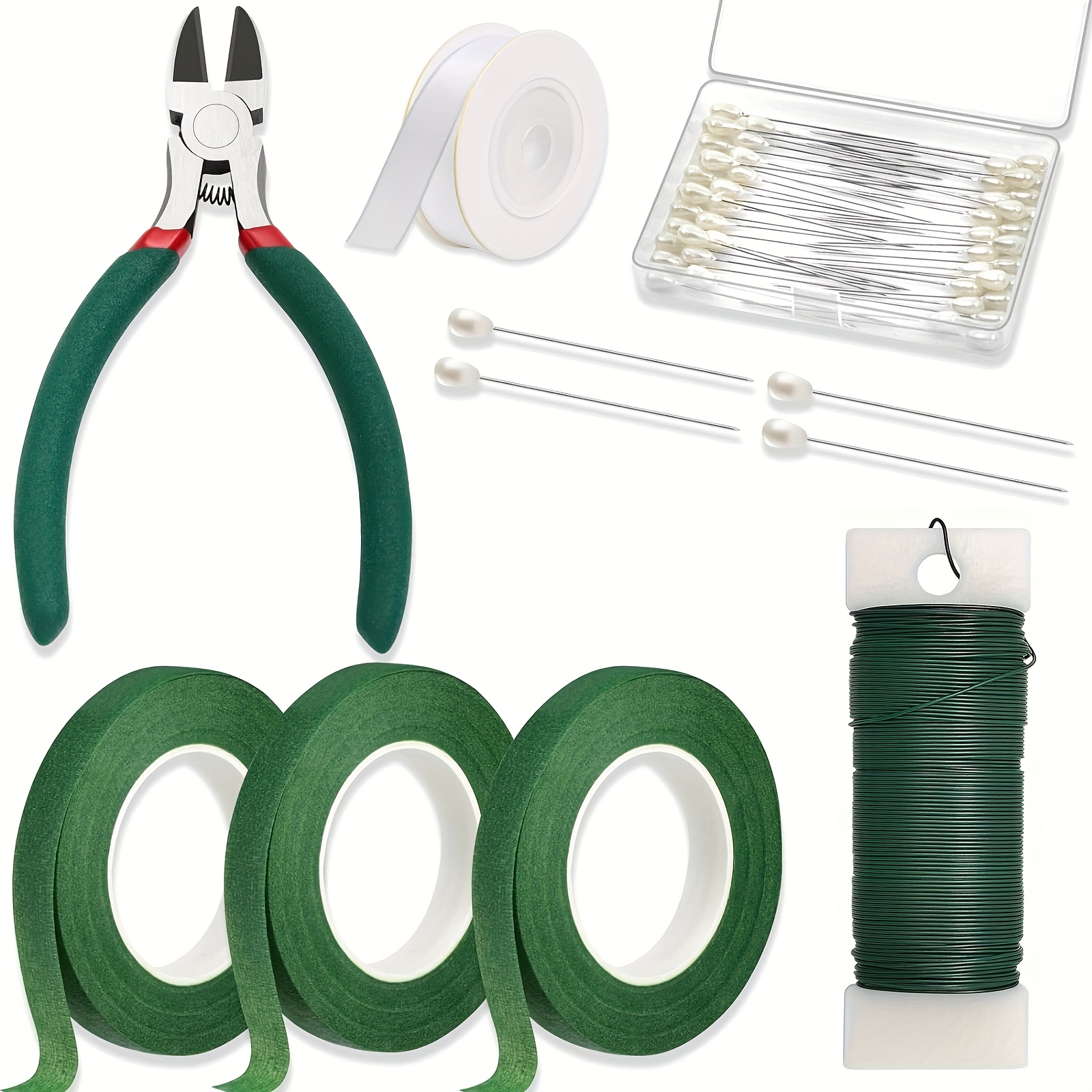TEMU 2rolls 1/2" Wide Floral Tapes For Bouquet Stem Wrapping And Floral Crafts, Wedding Bouquet, Dark Green, Light Green, Grass Green, Dark Brown