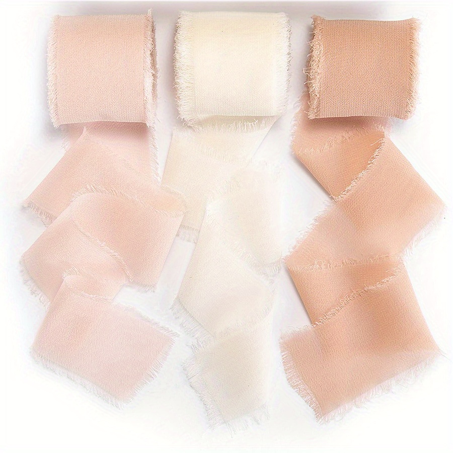TEMU 3 Rolls 1.57"x5m Fringe Chiffon Ribbon For Flower Bouquet, Handmade Burgundy Ribbon For Gift Wrapping, Frayed Edge Ribbon For Crafts, Decorating, Bouquet Wrap, Wedding Invitation
