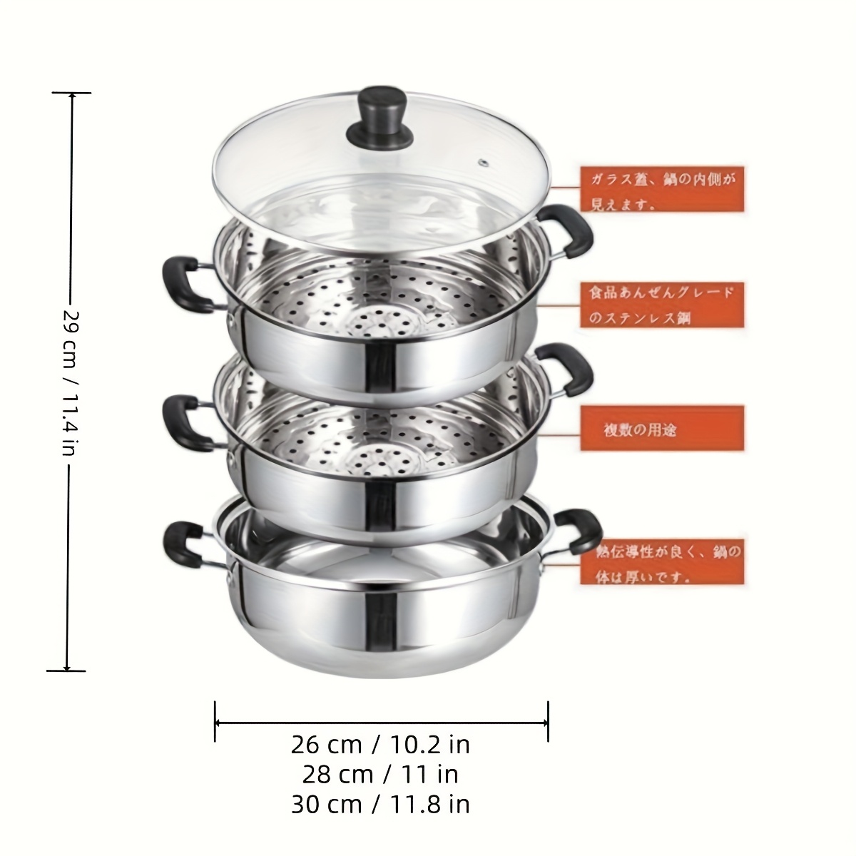 Product information for TEMU 3-tier 13.7qt Commercial Steamers - 800w Fast Cooking, 60-minute Timer, Vegetable Steam Cooker (black), By Yabano
