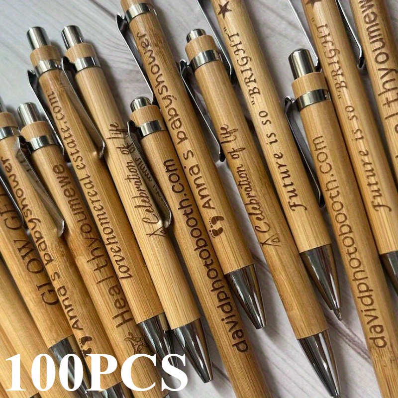 Product information for TEMU 30 Sets Personalized Bamboo Pens With Cowhide Cards & Bags - Engravable Wedding Guestbook Pens, Rustic Wedding Favors - Unique Bridal Party Gifts & Wedding Stationery Supplies