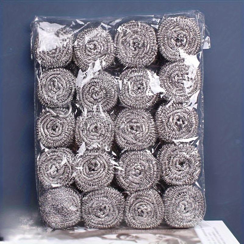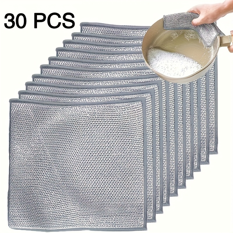 TEMU 30pcs Double Layer Stainless Steel Scouring Pads, Scratch-free Wire Cloths, Reusable Dishwashing Cloth For Kitchen Sinks And Pots, Steel Cleaning Pad, Cleaning