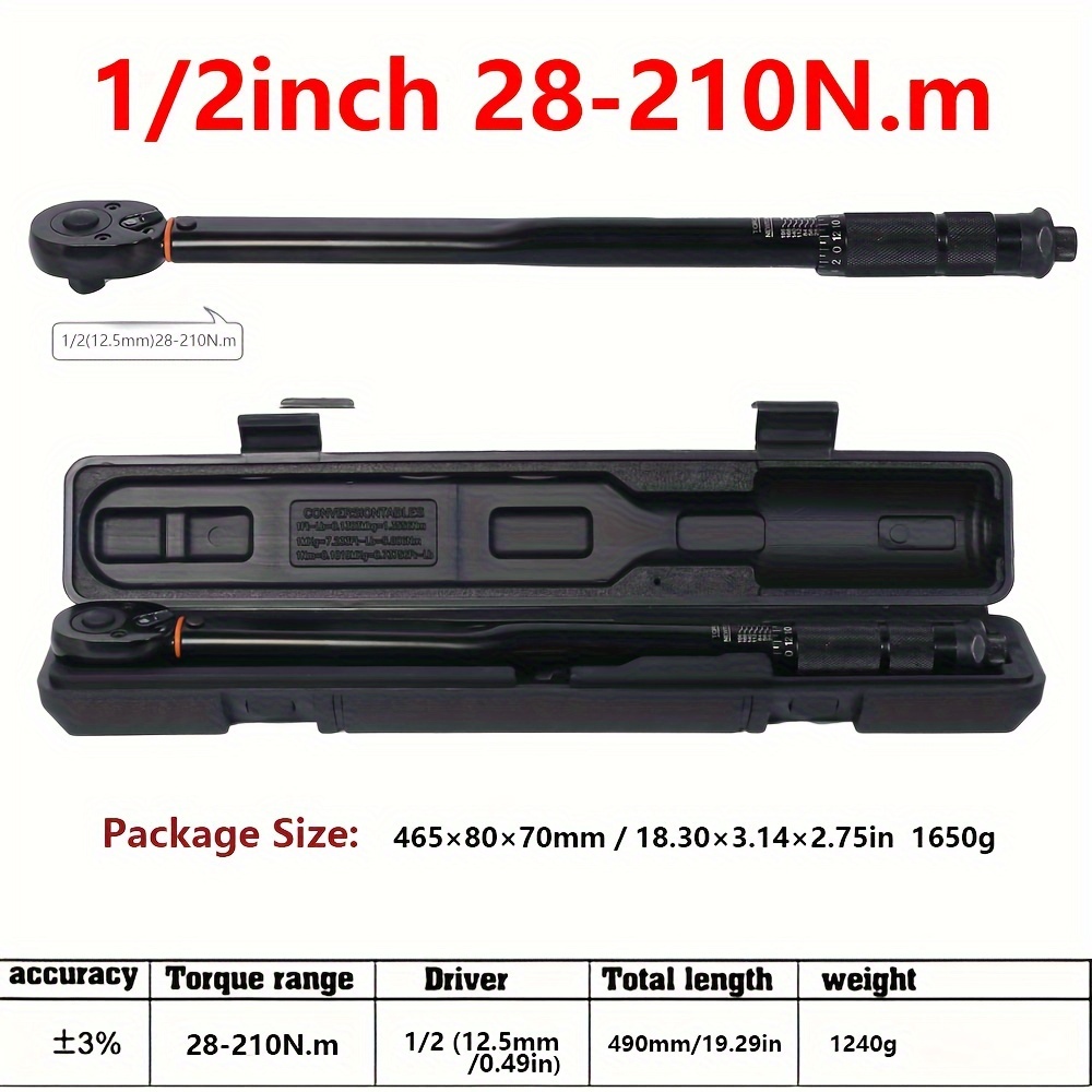 Product information for TEMU 3/8인치 토크 렌치 5-210N/m, 1/2인치 트랜스미션 클릭 토크 렌치, 1/4인치 자동차 수리용 렌치 실버 레드