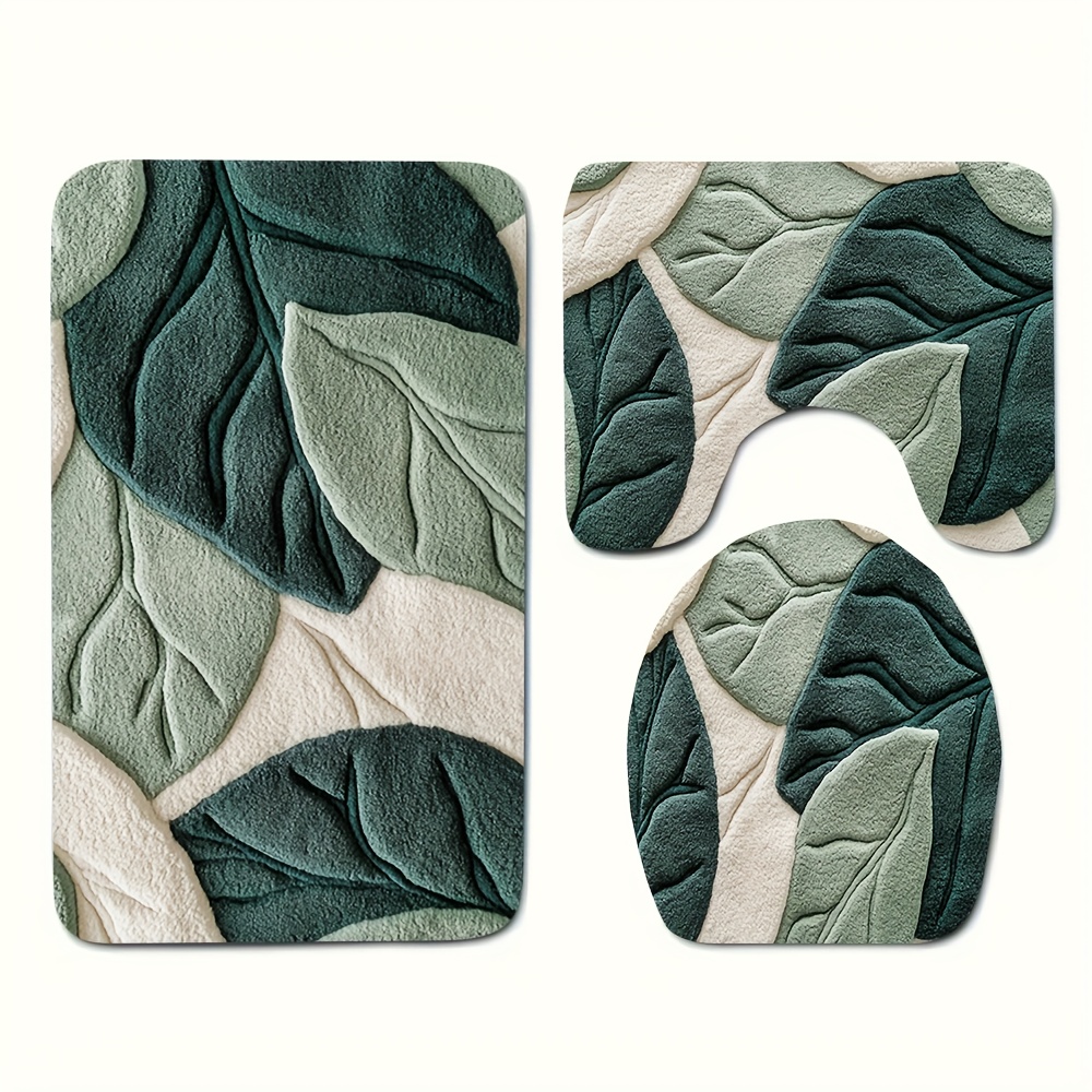 TEMU 3pcs Algae Mud Bath Mat Set, Non-slip And Absorbent Polyester Floor Mats For Bathroom, Kitchen, Laundry Room, Indoor Use, Bathroom Floor Mats