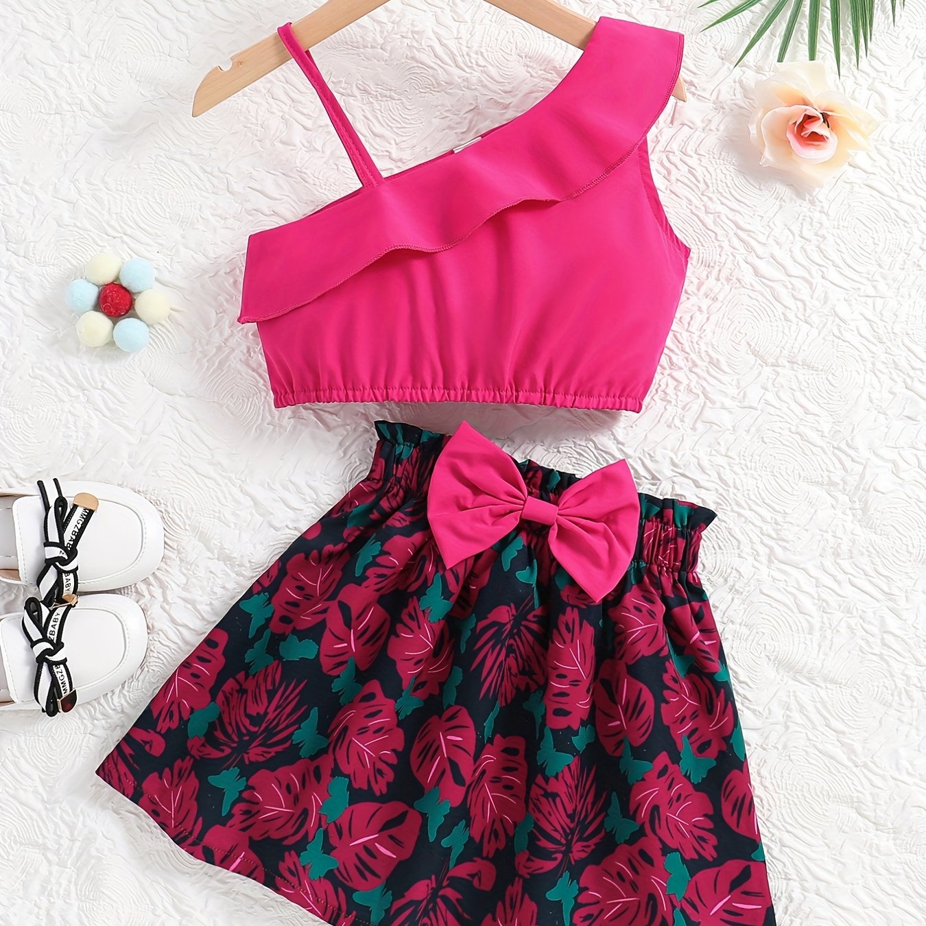 TEMU 3pcs Girls' Fashion V-neck Solid Color Single-breasted Vest Top, Pleated Skirt, Belt Set