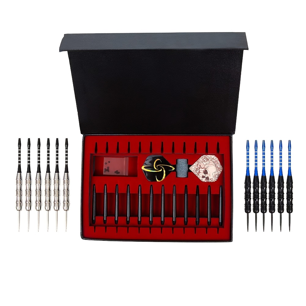 TEMU 3pcs Hard Dart Set With 23g Steel Tip Colorful Darts, Includes Extra 3 Plastic Replacement Shafts + 6 Rubber Rings & 1 Dart Wing Protector, Purple/blue