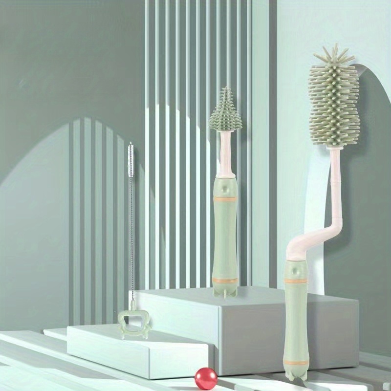 TEMU 3pcs Silicone Bottle Brush Set, Multi-functional Straight Handle Portable Pacifier And Water Cup Cleaning Kit
