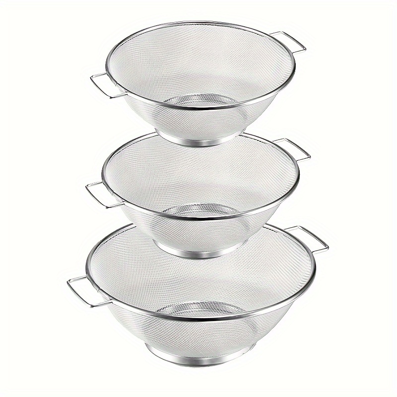 TEMU 3pcs Stainless Steel Fine Mesh Strainer Set - Durable, Rust-resistant With Handle - Essential Kitchen & Baking Tools For Smooth Sauces & Flour