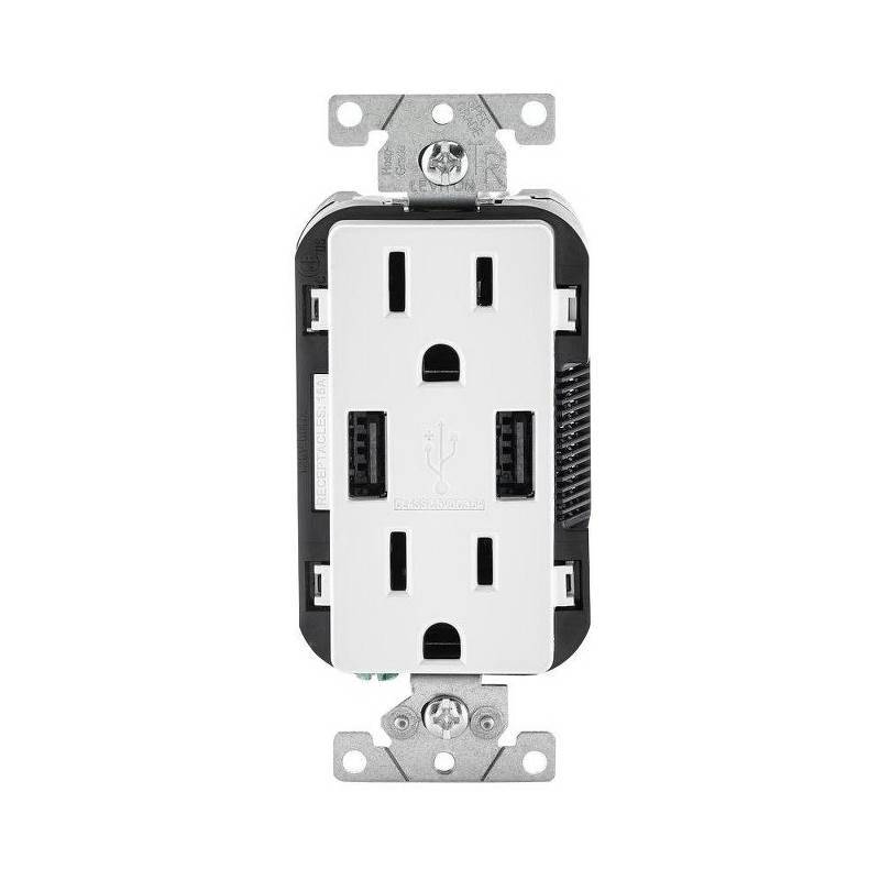 Features- 2-Port Combination Duplex Receptacle with USB Charger