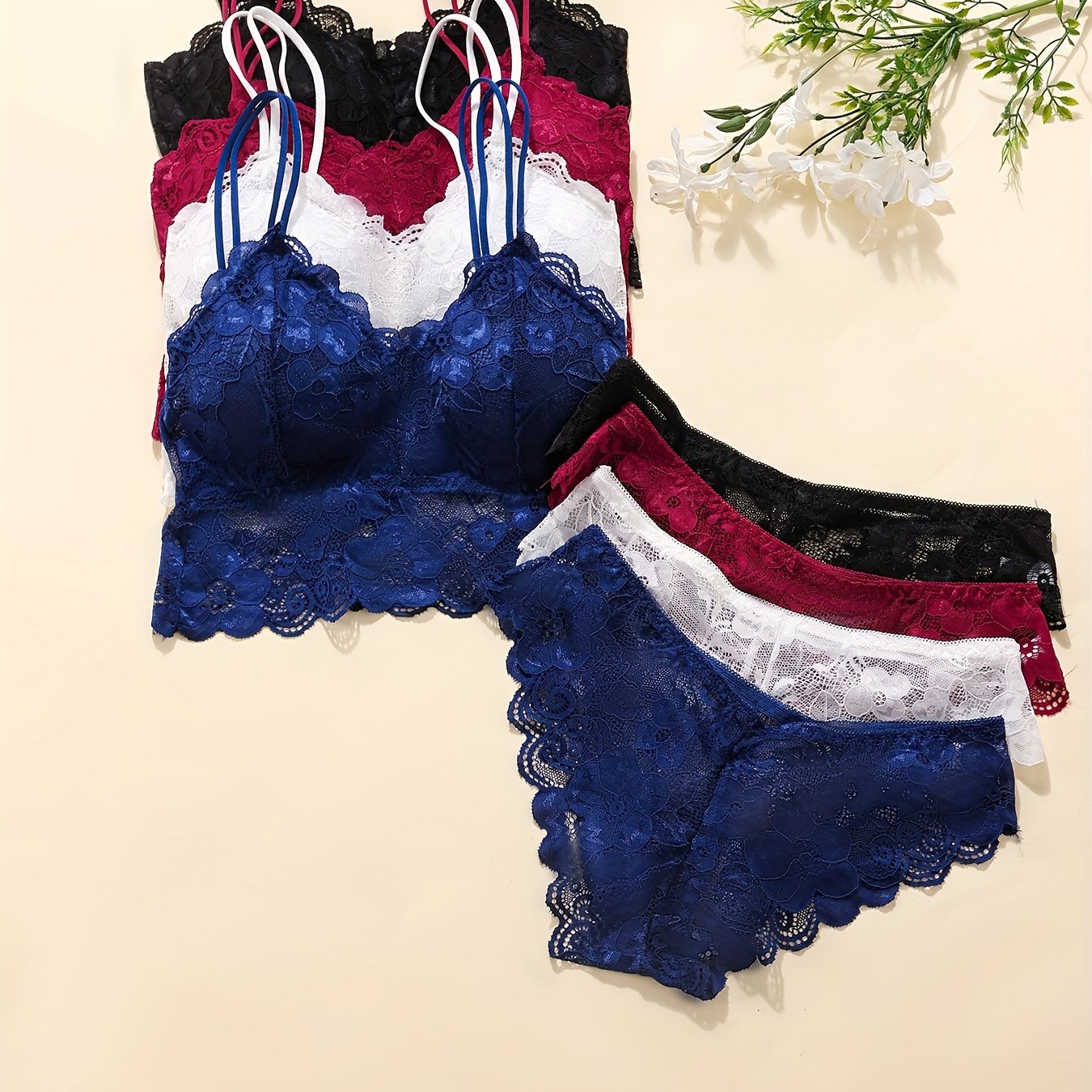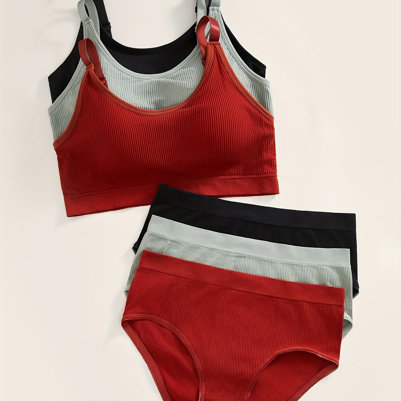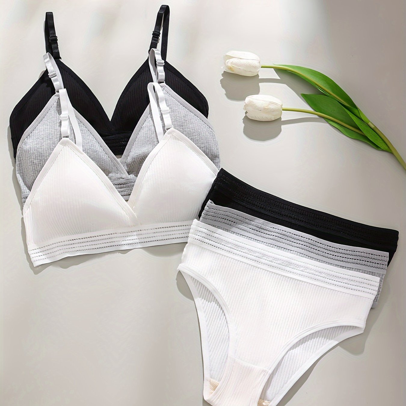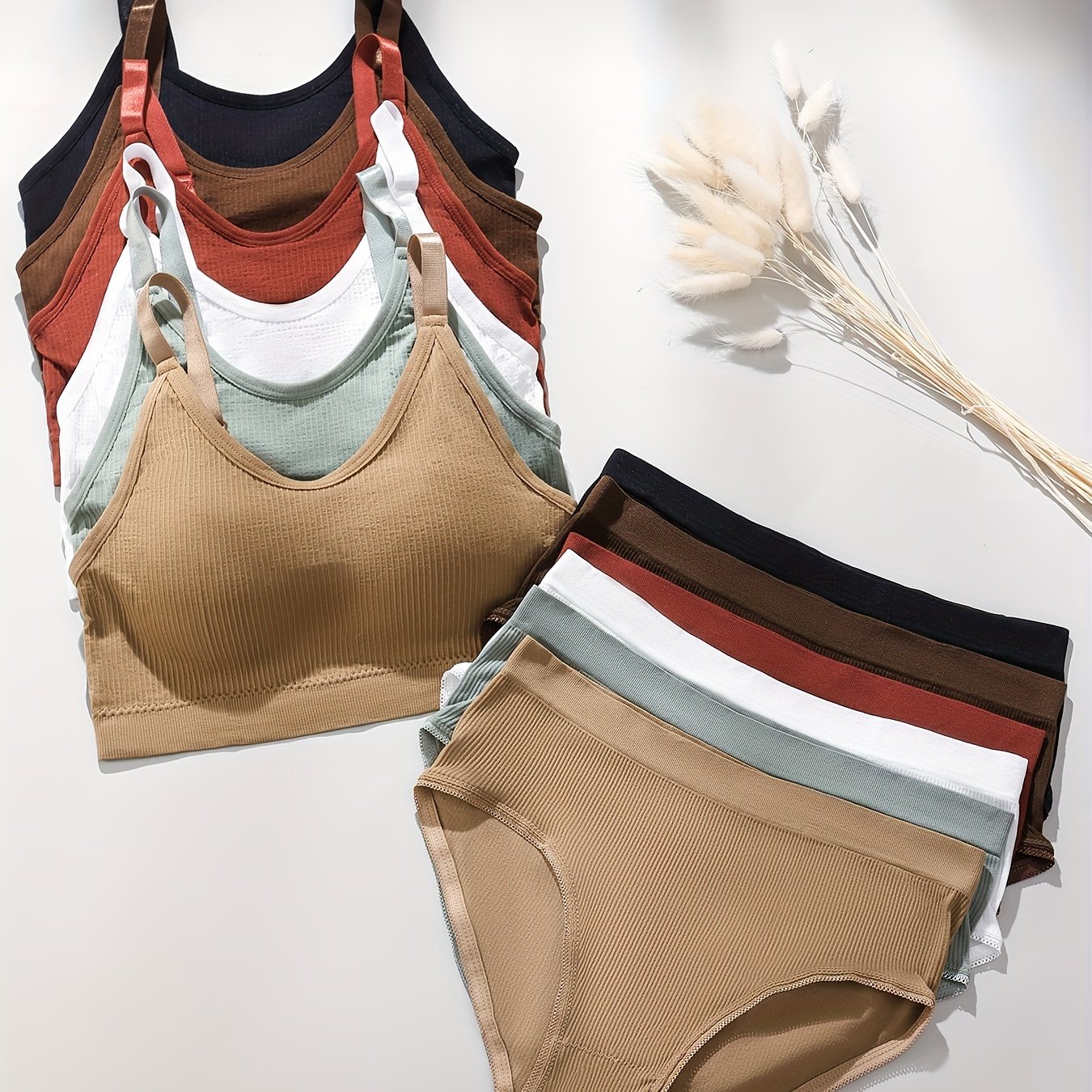 TEMU 4 Sets Sexy Ribbed Bralette And High Waisted Panty Set, Assorted Colors, Comfortable Lingerie For Women, Stretchy Breathable Underwear Set