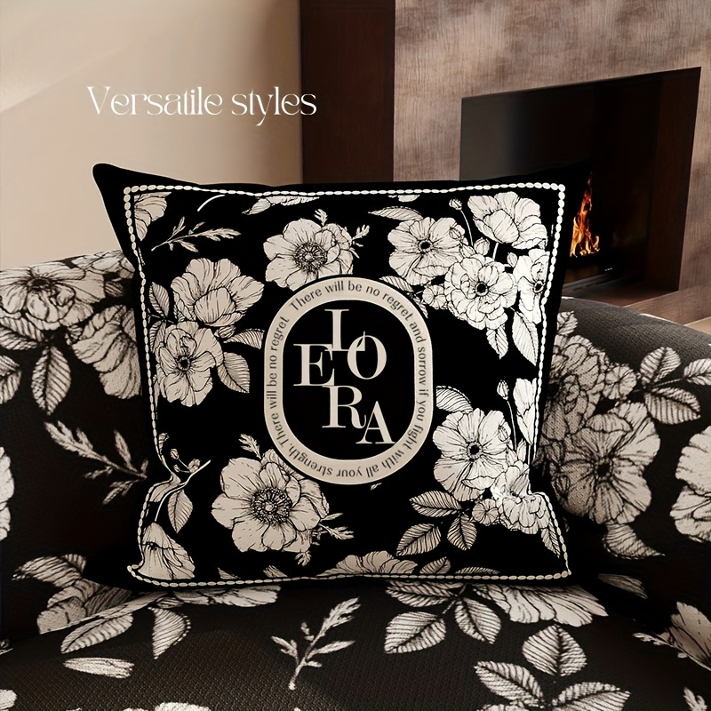 Product information for Floral Black Cat Art Print Cushion Cover 45x45cm Set of 4