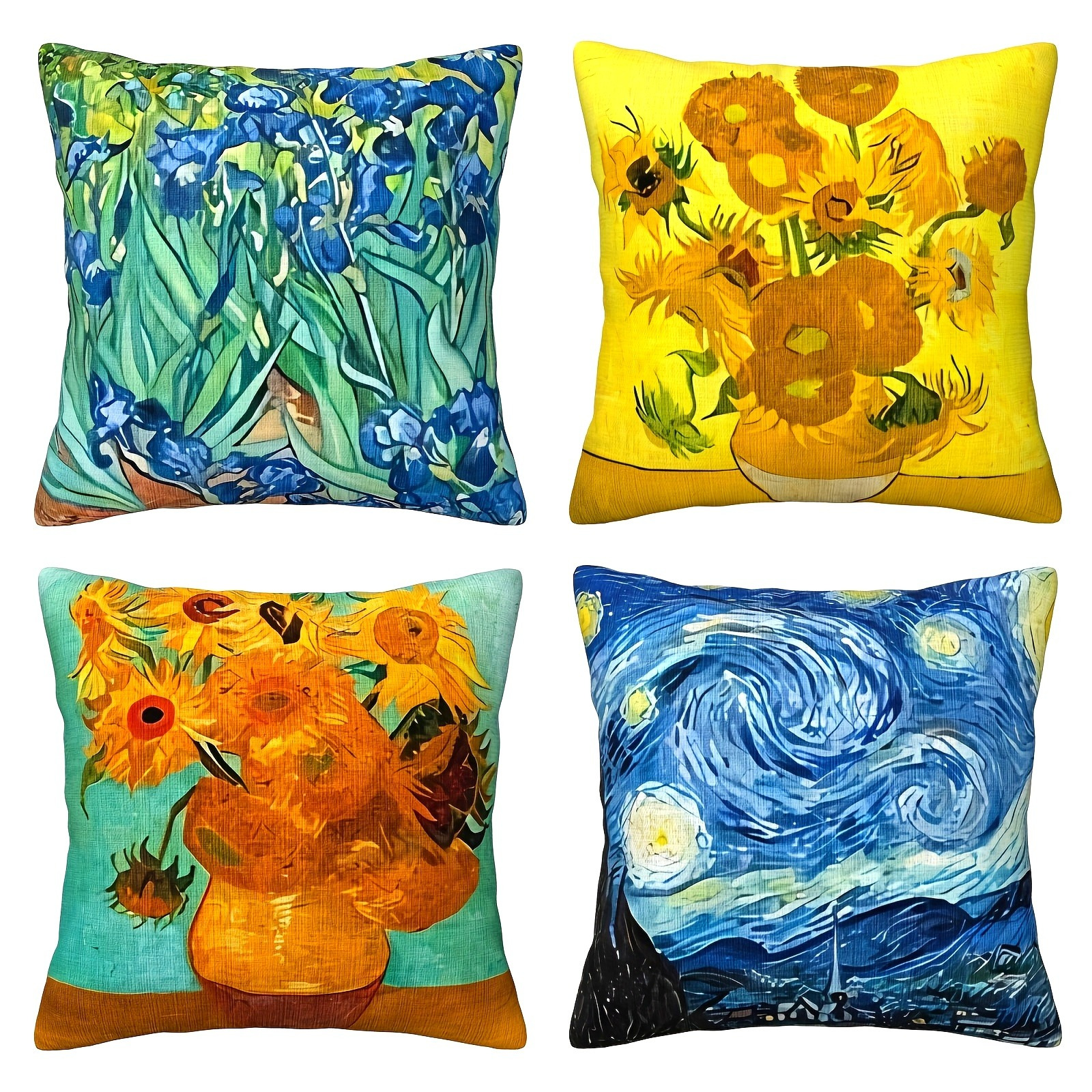 Add artistic flair to your home decor with these 4 colorful floral black cat painting style cushion covers. Each 45x45cm pillowcase features vibrant single-sided prints showcasing whimsical feline designs surrounded by beautiful floral patterns. The high-quality fabric ensures durability while maintaining comfort for daily use. These decorative covers easily slip over standard cushions to instantly refresh your living room, bedroom, or reading nook. The unique artistic design makes them perfect conversation starters and ideal gifts for cat lovers and art enthusiasts. Mix and match with existing decor or create a coordinated look with the complete set of four distinctive patterns.