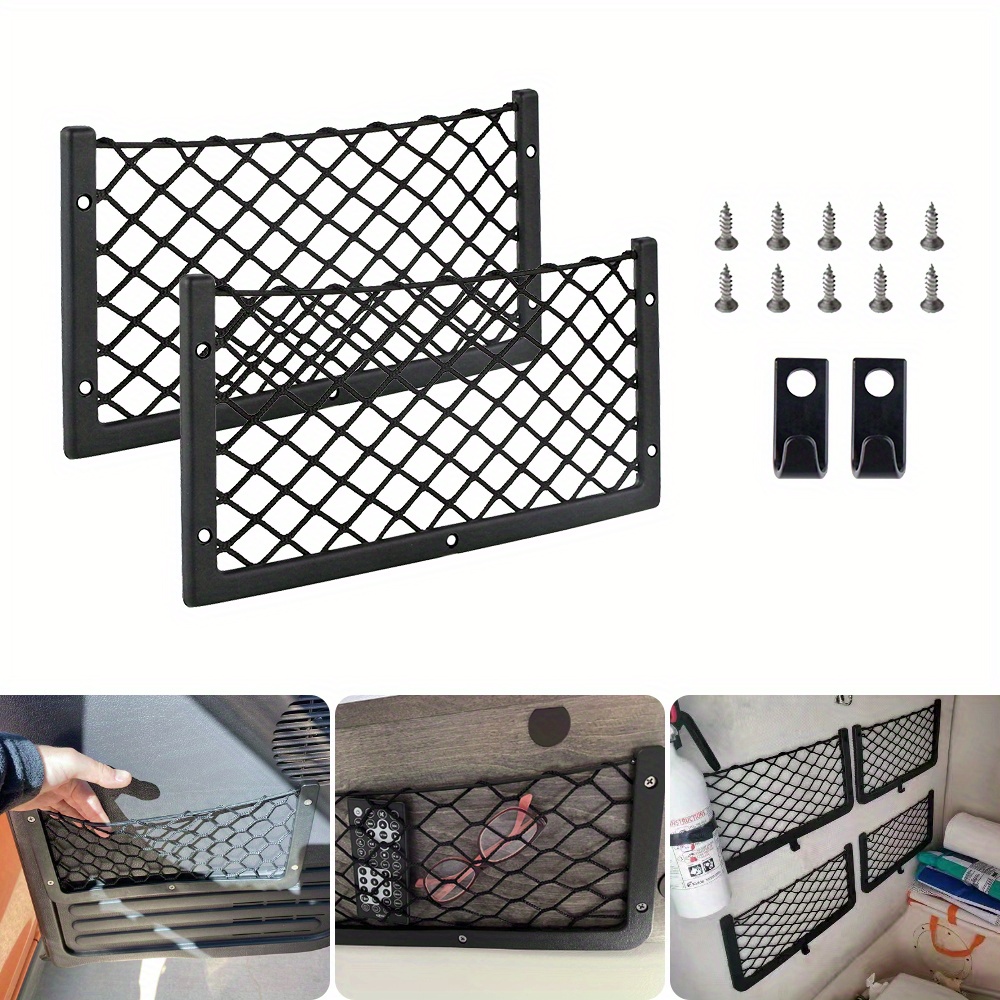 TEMU 4pcs Elastic Cargo Storage Mesh With Self-adhesive Strips - No Drill Installation, Durable Polyester Blend Organizer For Rv, Car, Suv, Truck - , Damage-free Removal