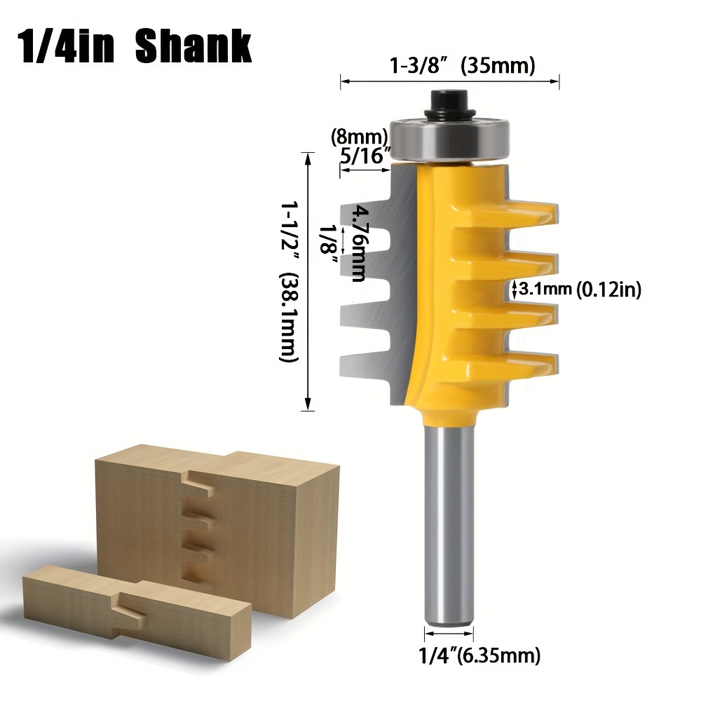 Product information for TEMU 4pcs Woodworking Milling Cutter Set, 1/4" Bearing Straight Edge Cutter, Flush Trimming Cutter, Carbide Top Bearing