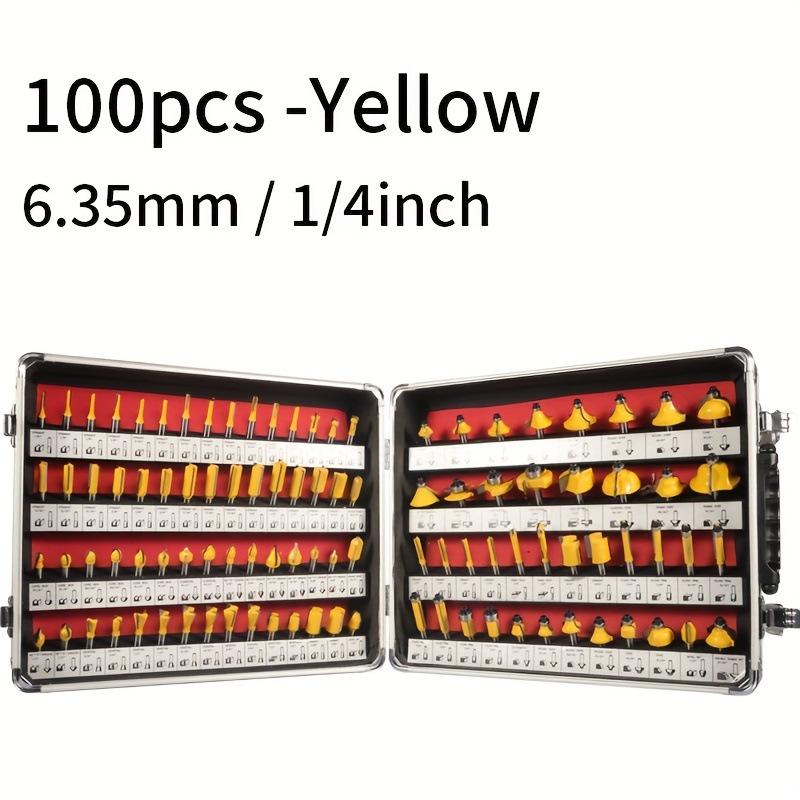 TEMU 4pcs Woodworking Milling Cutter Set, 1/4" Bearing Straight Edge Cutter, Flush Trimming Cutter, Carbide Top Bearing