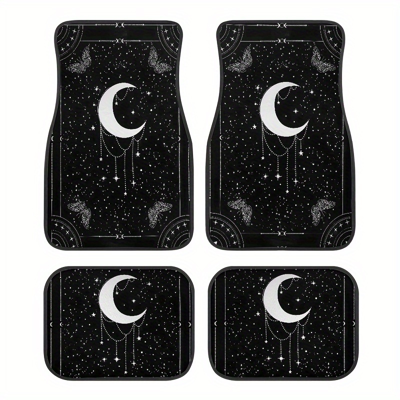 TEMU 4pcs/set Blue Pattern Printed Car Front/rear Foot Mats For Cars, Suvs And Trucks, Durable Polyester Carpet Mats, Interior In , Ideal Gift For Men And Women