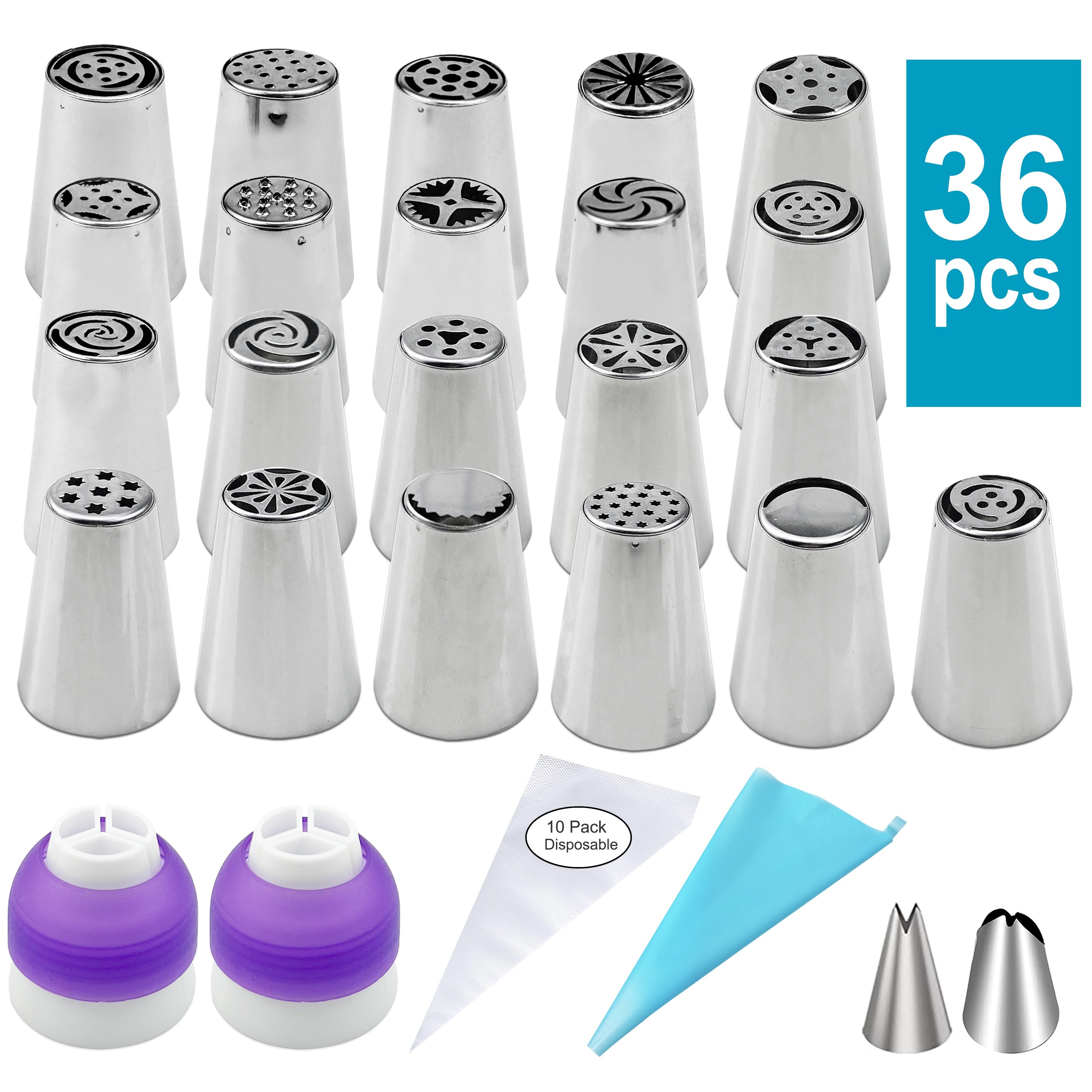 TEMU 5pcs Stainless Steel Piping Tips Set, Chrysanthemum & Petal Shapes, Cream Icing Nozzles For Cake, , Baking Tools, Kitchen Thick 304 Seamless, Cake Piping Set