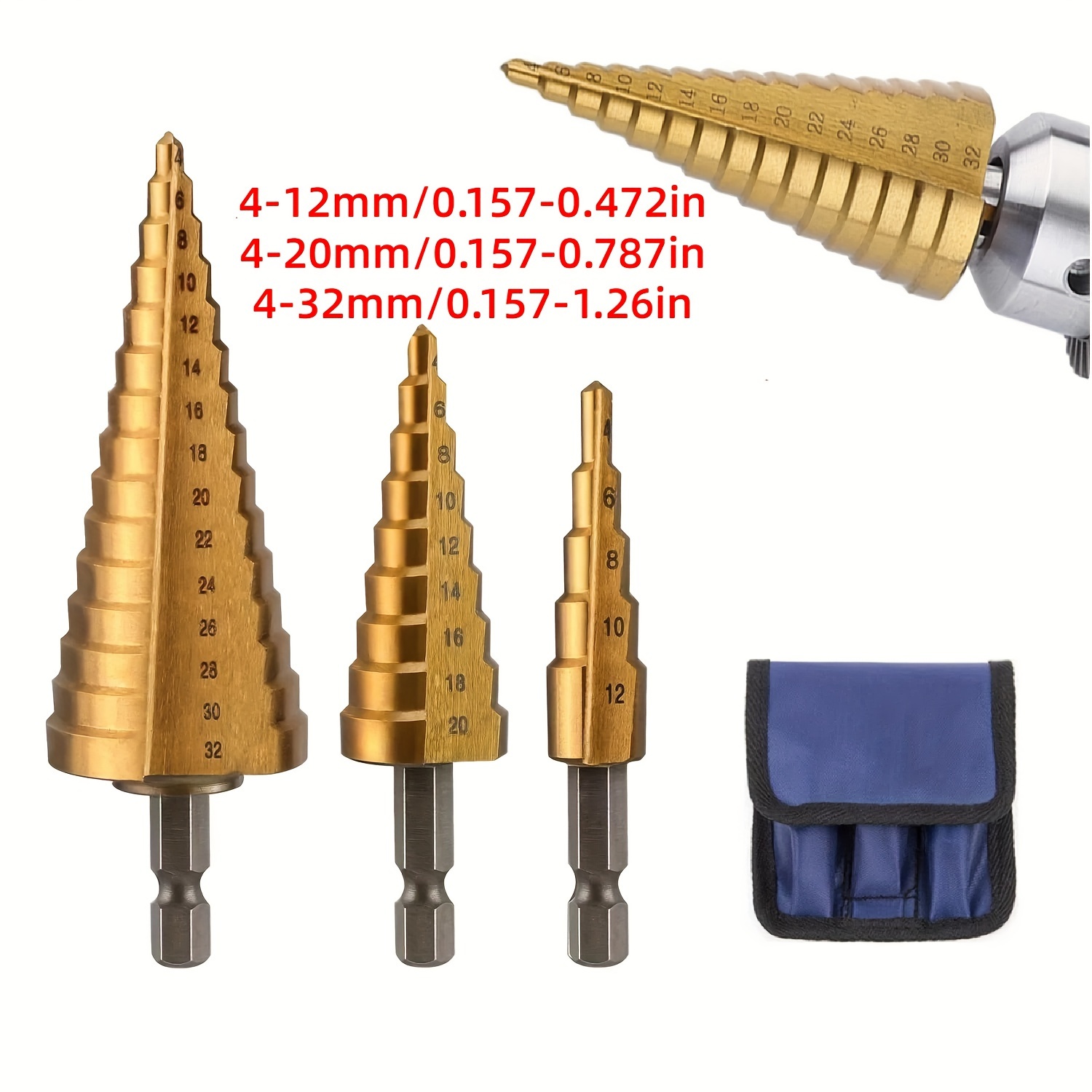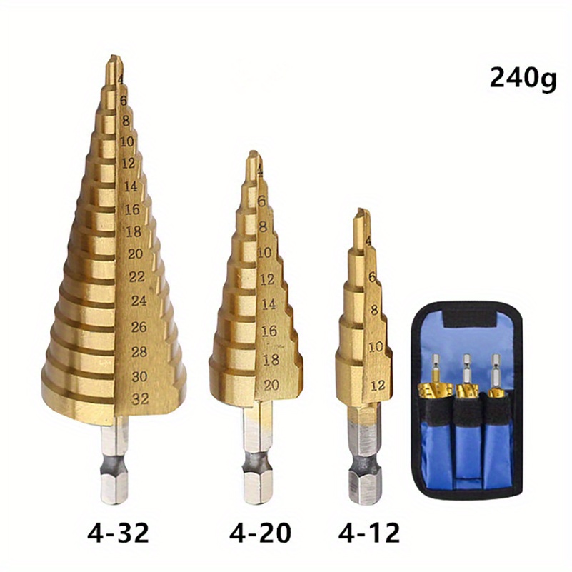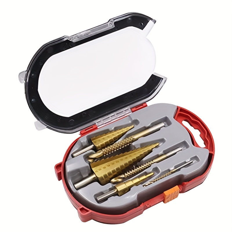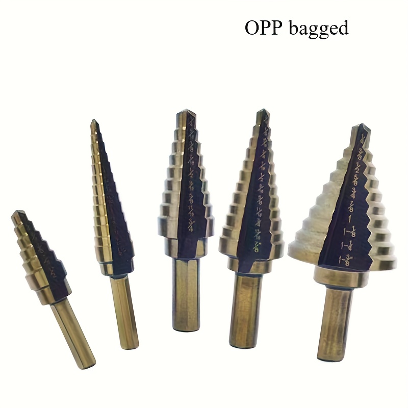 TEMU 5pcs Steel Step Drill Bit Set - Conical Cone Drill For Wood, Plastic, Metal, Electric Drill Compatible, No
