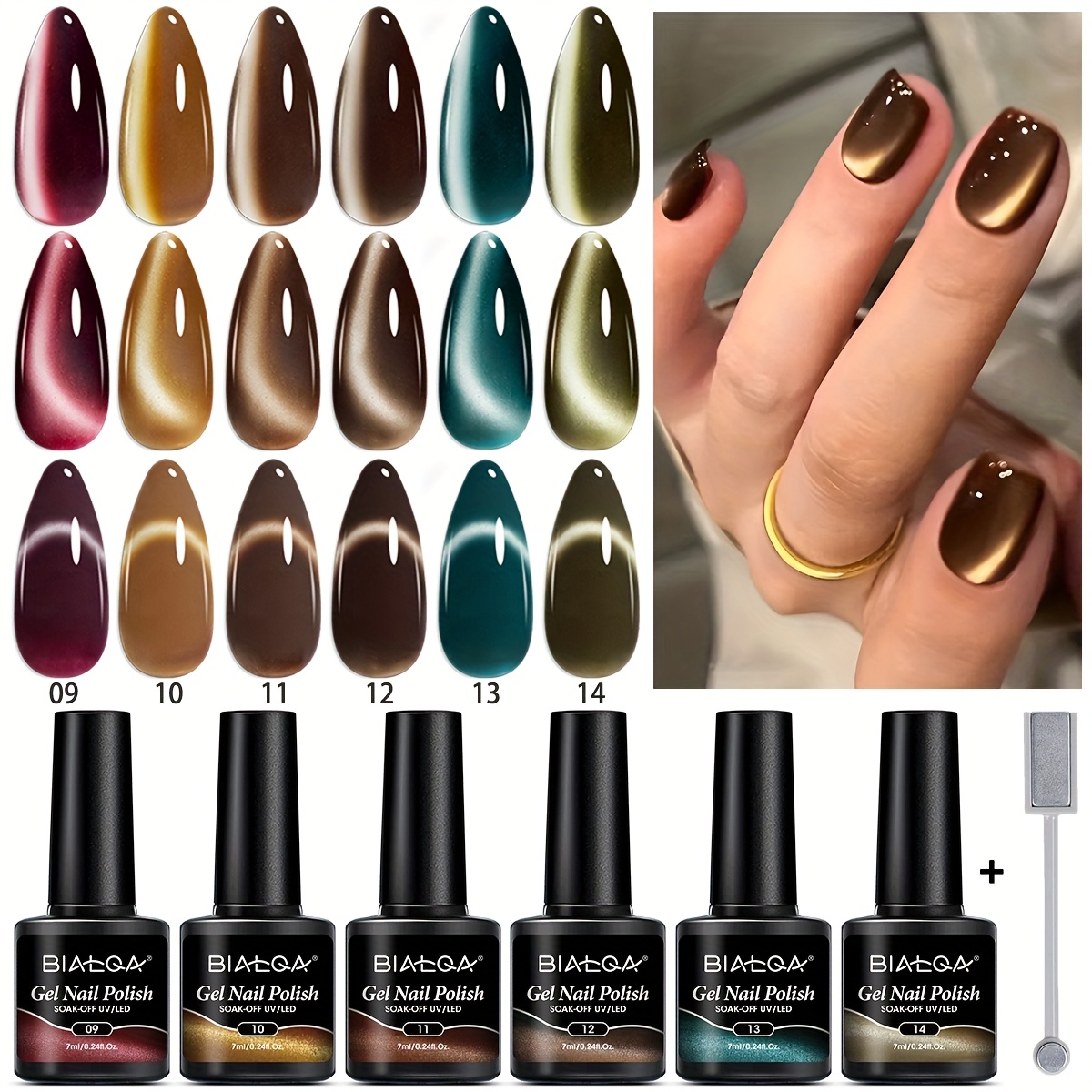 TEMU 6 Farben Katzenaugen-Gel-Nagellack - 9D Holographischer Magnetnageldesign mit Glitzer & Chrom-Finish, Formaldehydfrei, Langanhaltender Schimmer-Effekt für DIY-Maniküre