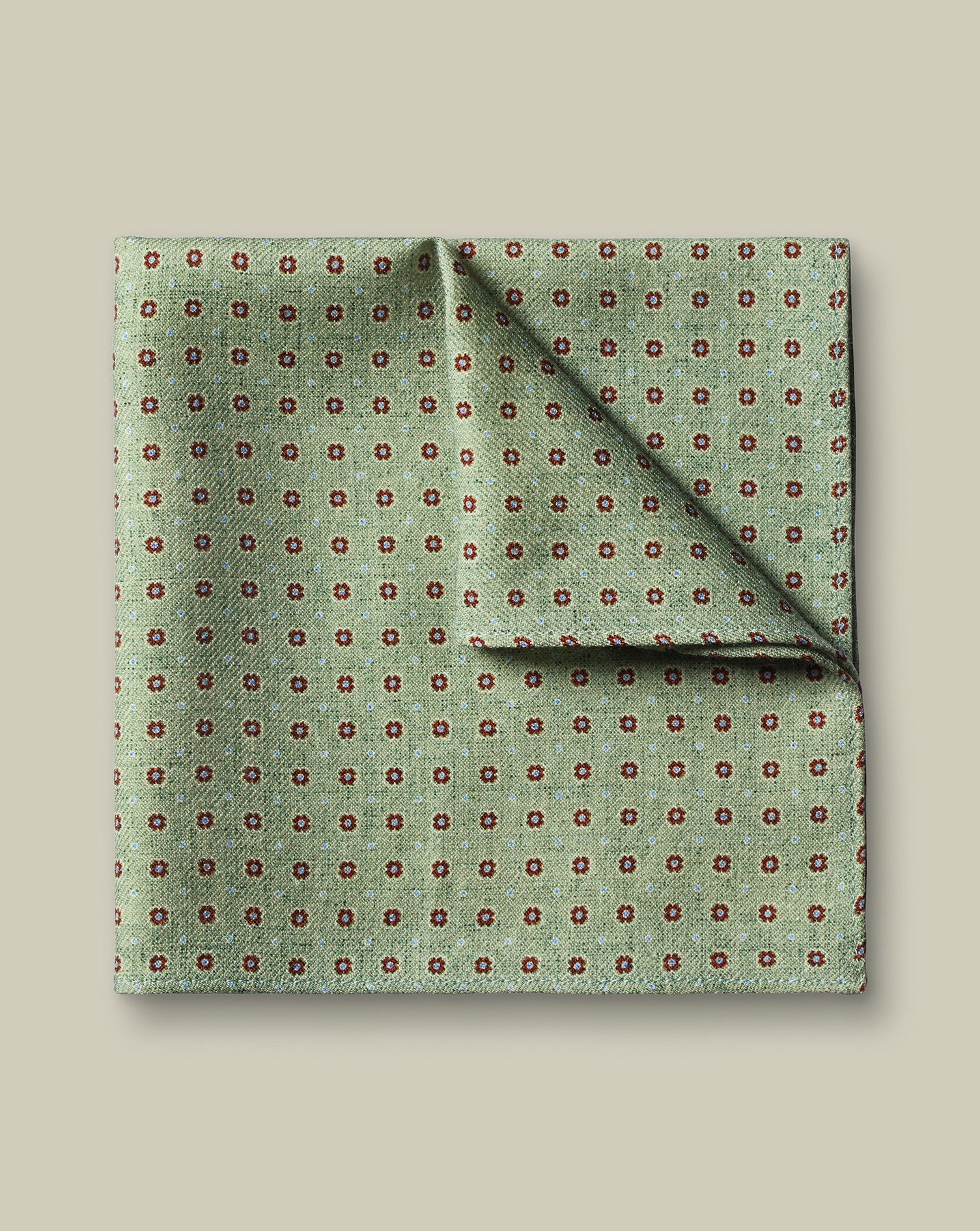 100% wool, 32cm x 32cm, Dry clean only, Country of Origin: Vietnam - Wool Geo Print Pocket Square - Green | Men's Charles Tyrwhitt Geo Print Pocket Square - Green Size 32cm x 32cm Wool