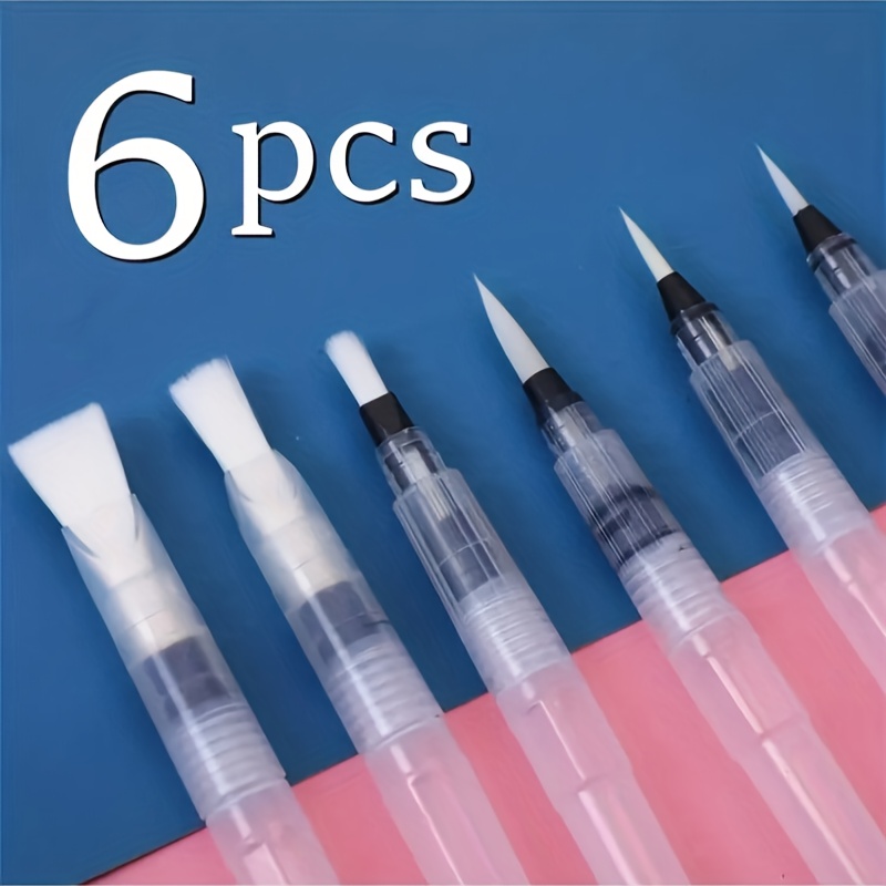 TEMU 6pcs Round Brush Set With Long Wooden Handles For Oil And Acrylic Painting - Art Supplies