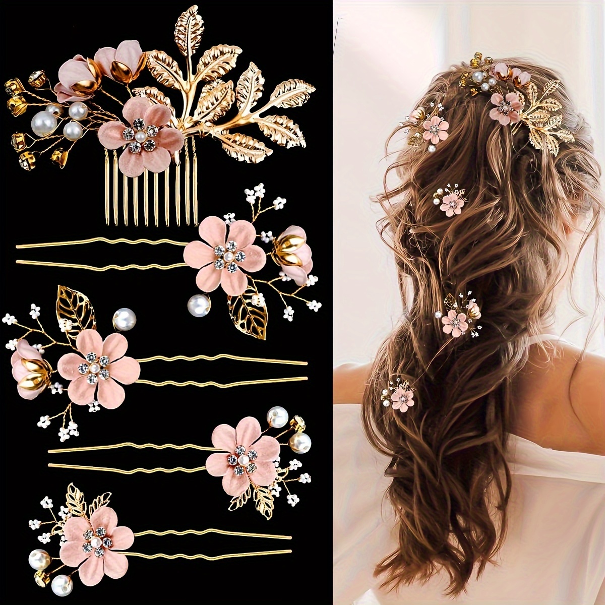 TEMU 6pcs Zhenzhuacc French Hair Clips - , For Hair, Elegant Design For Weddings & Formal Events, Wedding Hair Accessories, Sleek , Durable Hair Clips