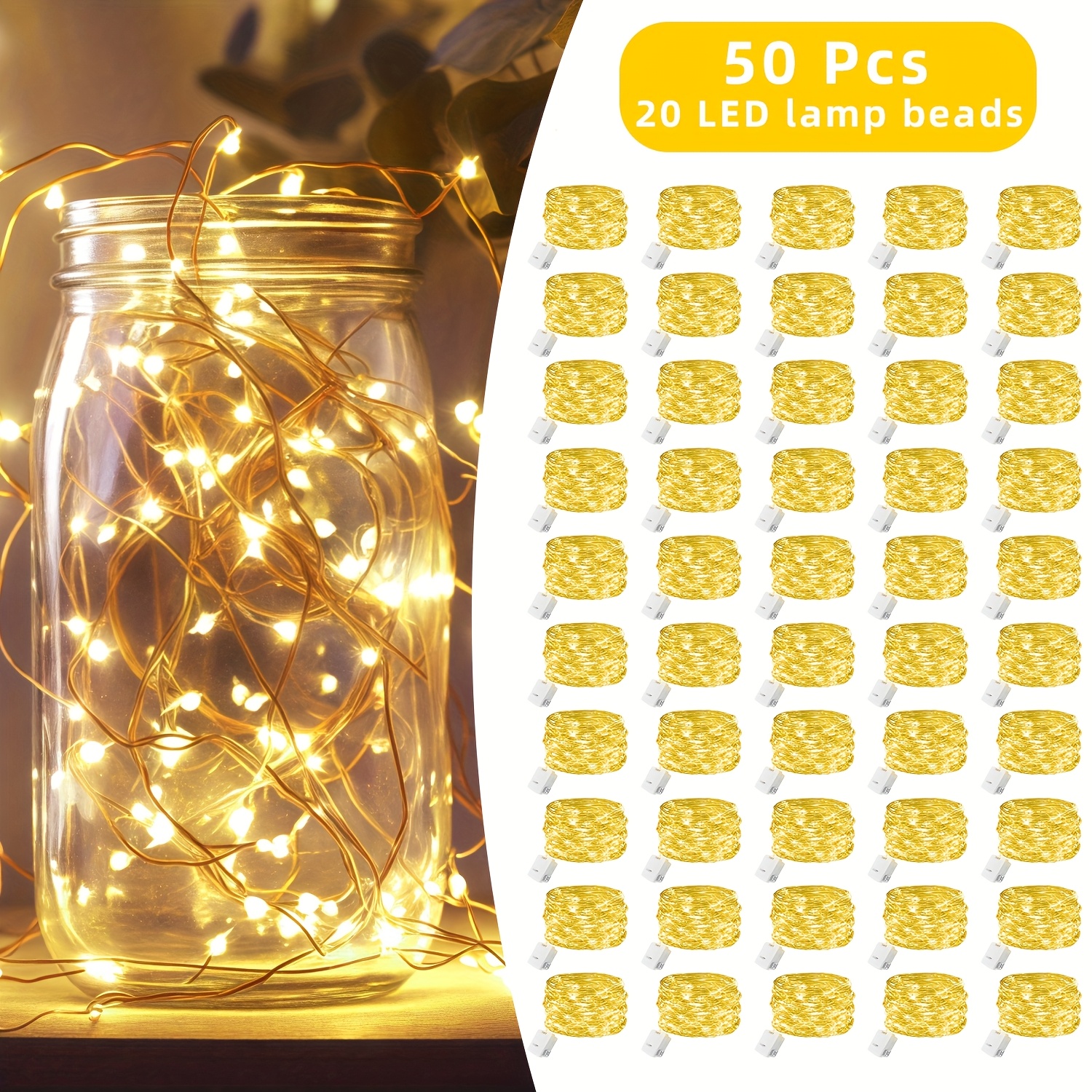 Discover the enchanting glow of TEMU's 50-piece LED Fairy Light set, designed to transform any space into a magical wonderland. These battery-powered string lights feature a delicate silvery wire adorned with 20 warm white LEDs, creating a soft, ambient glow perfect for any occasion.