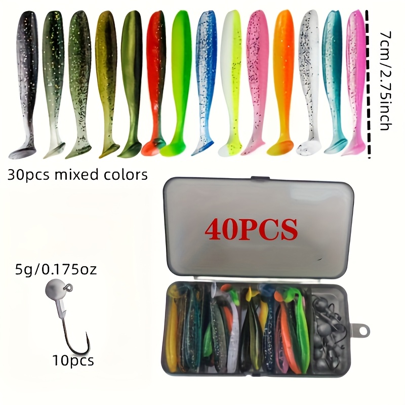 TEMU 7pcs Shrimp Fishing Lure Built-in Hook Luminous Soft Bait Shrimp Kit Freshwater/saltwater Fishing Sabiki Fishing Tackles