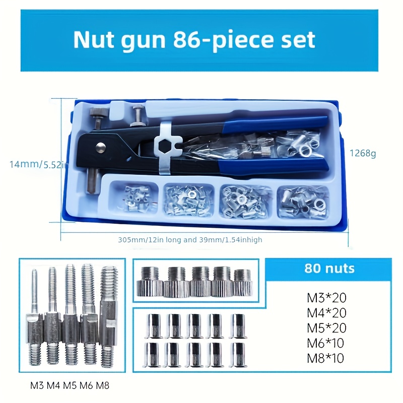 TEMU 7pièces Manuel Rivet Gun Full Size Set M3-M12 Nut Manuel Facile à utiliser Kit durable Convient à l'automobile Renovation de Outils de jonction métallique variés
