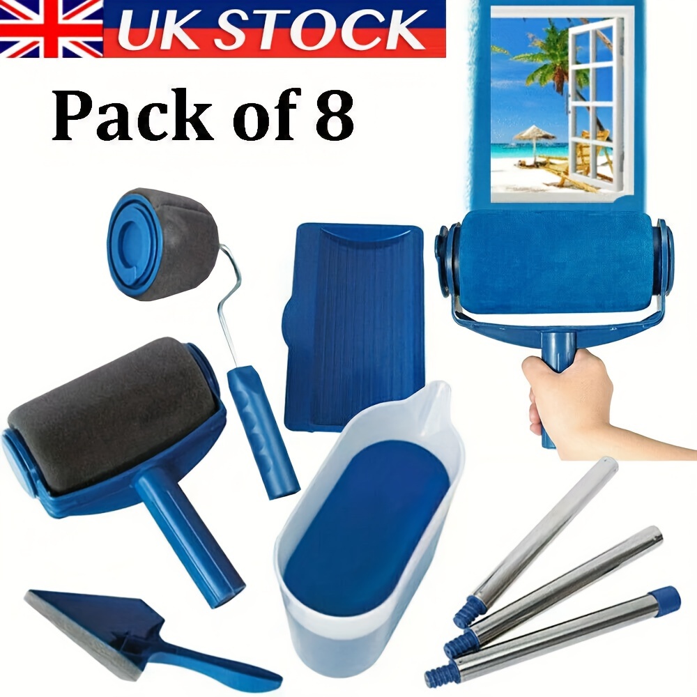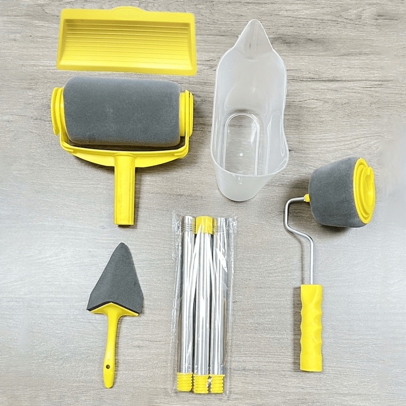 TEMU 8pcs Paint Roller Set With Stick - Quick Room Makeover, Easy-to-use Wall Painting Tools Kit, Paint Rollers For Wall