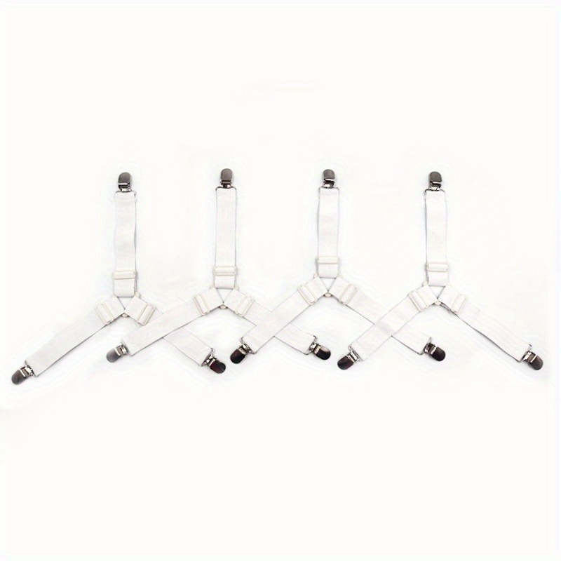 Product information for TEMU 8pcs Sopito Adjustable Elastic Sheet Straps - Heavy Duty Clips, Attaches To Mattresses & Bedding, Durable Nylon With Black Straps & White Clips, Hand Wash Only, Mattress Pads For Bedding