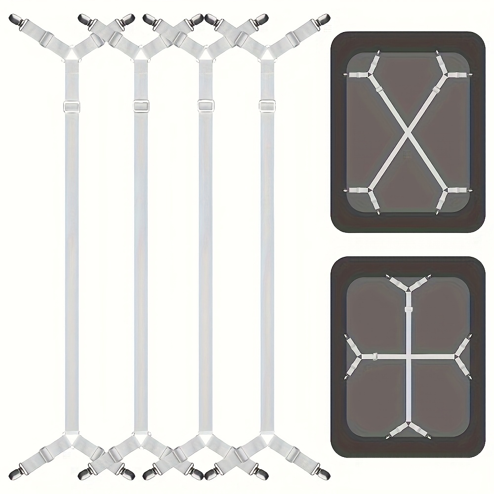 TEMU 8pcs Sopito Adjustable Elastic Sheet Straps - Heavy Duty Clips, Attaches To Mattresses & Bedding, Durable Nylon With Black Straps & White Clips, Hand Wash Only, Mattress Pads For Bedding