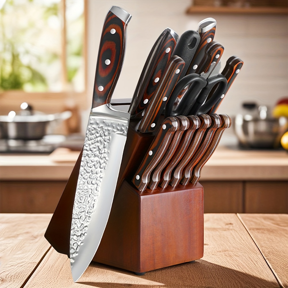 TEMU 9-teiliges Set Rote Messer! Mit drehbarem Messerrast. Multifunktionale Klingen, für alle Kochbedürfnisse. Hochwertig und langlebig. Verbessert sofort Ihr Kocherlebnis!