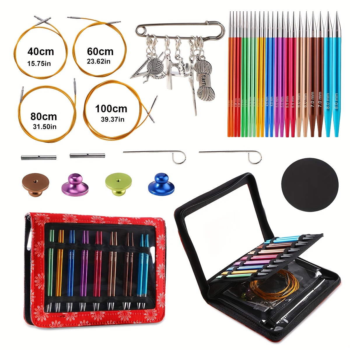 TEMU 9pcs Circular Knitting Needles Set 60 Cm, Metal Circular Needles For Knitting, Fixed Cable Round Knitting Needles With Dimensions, Long Circular Needles Set For Chunky Blanket Larger Project