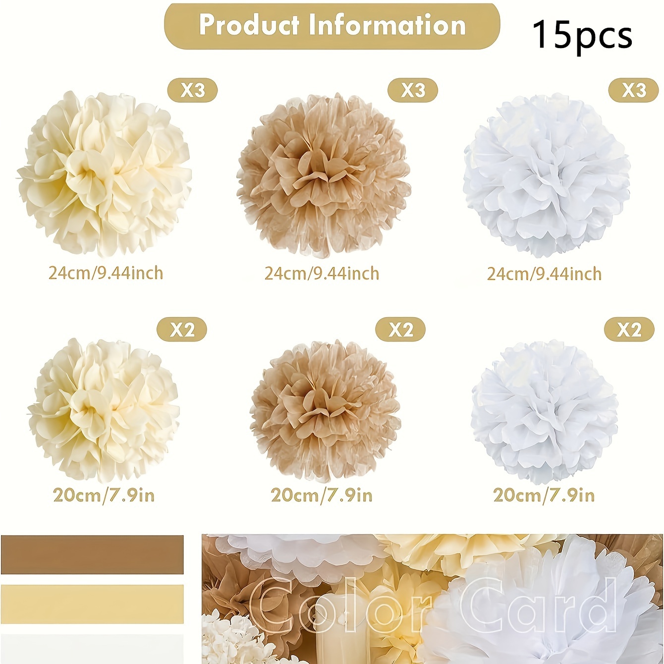 Product information for TEMU 9pcs Elegant Gray-green Paper Pom Pom Set - Ideal For Weddings, Bridal Showers, - Versatile Party Decorations With Streamers & Hanging Decor, Celebration Pom Poms|soft Pastel Pom Poms| Design