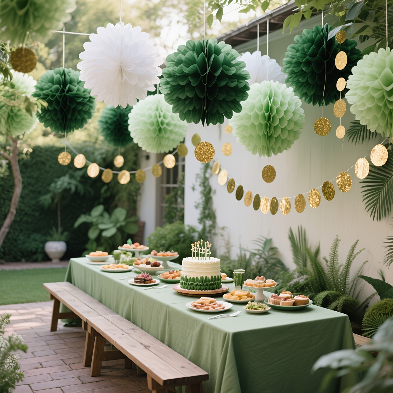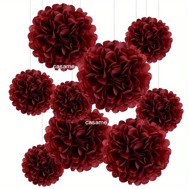TEMU 9pcs Elegant Gray-green Paper Pom Pom Set - Ideal For Weddings, Bridal Showers, - Versatile Party Decorations With Streamers & Hanging Decor, Celebration Pom Poms|soft Pastel Pom Poms| Design