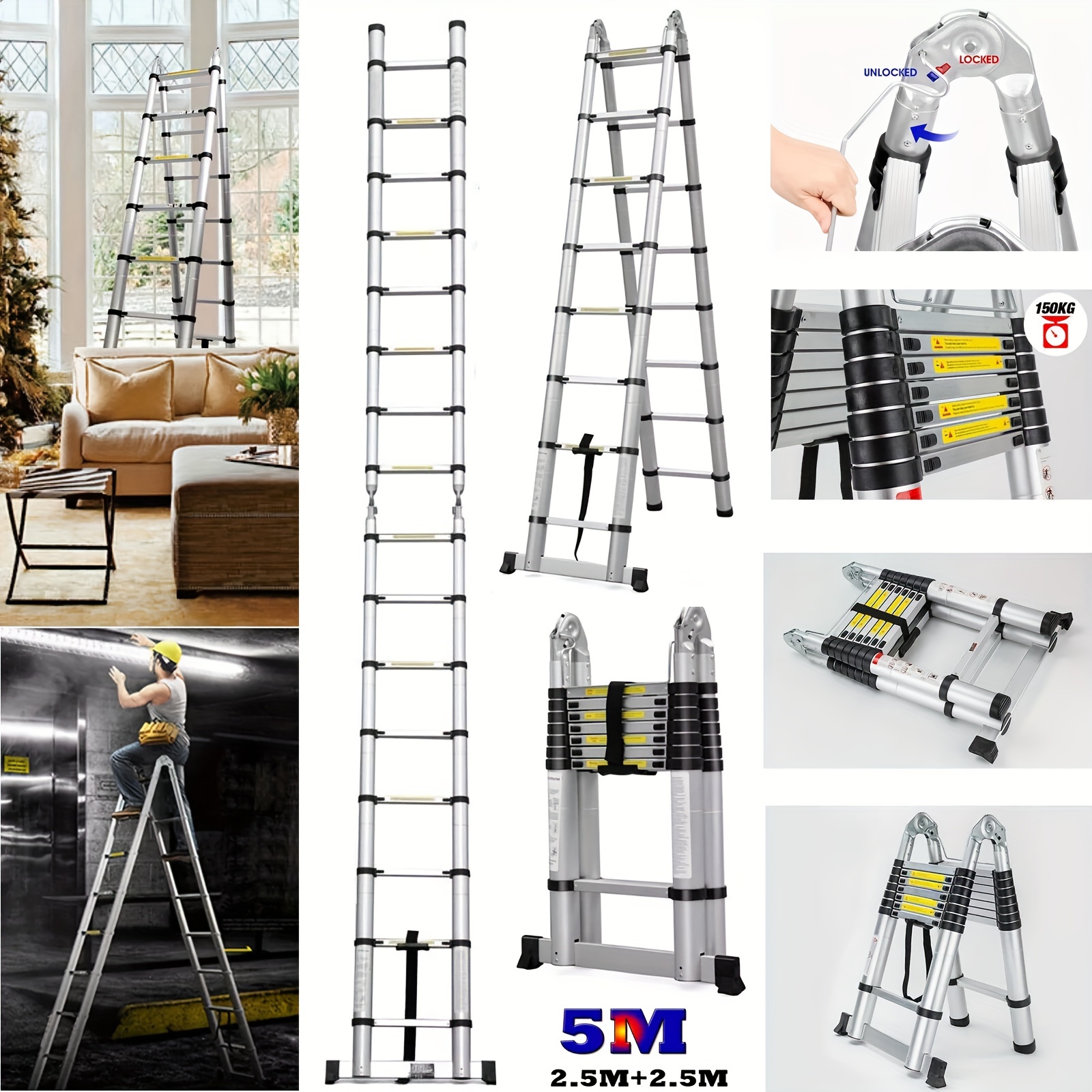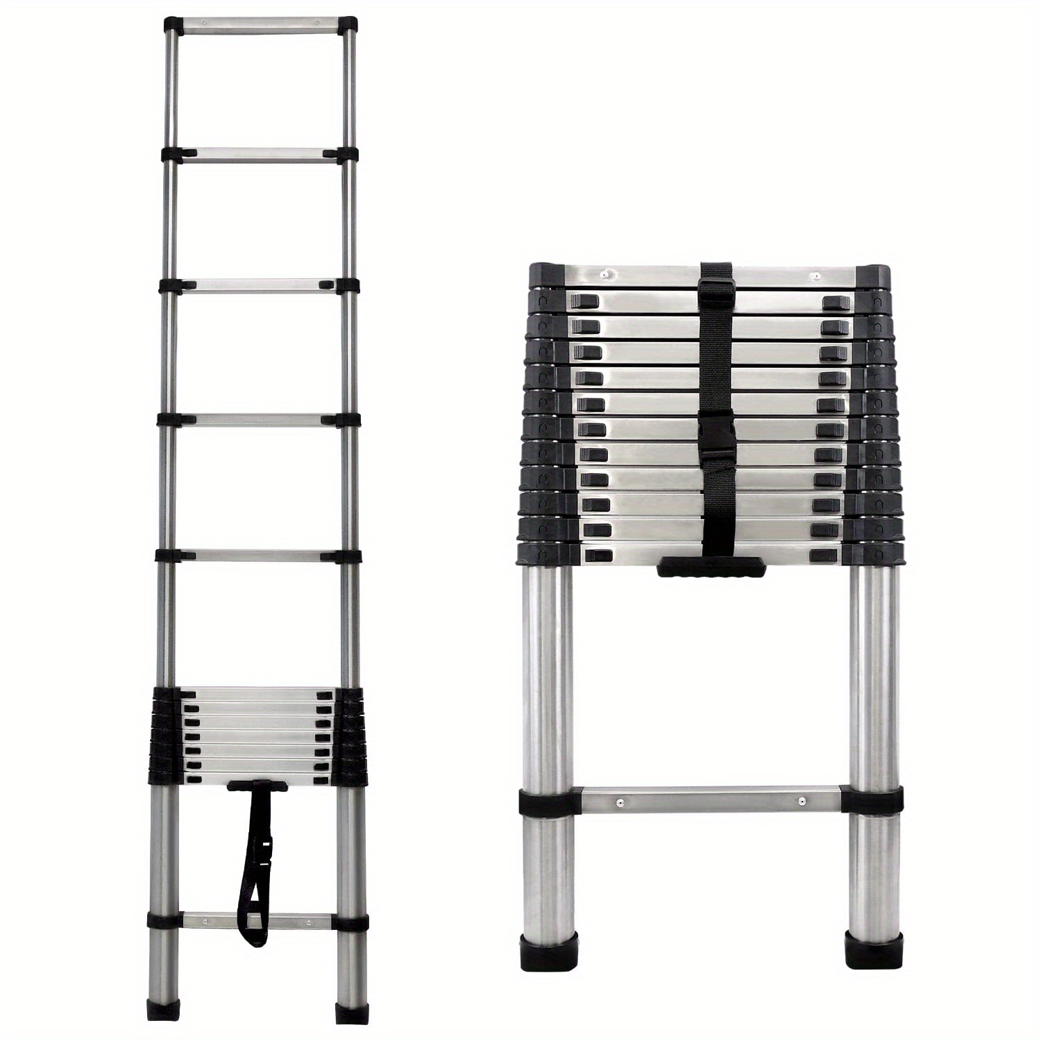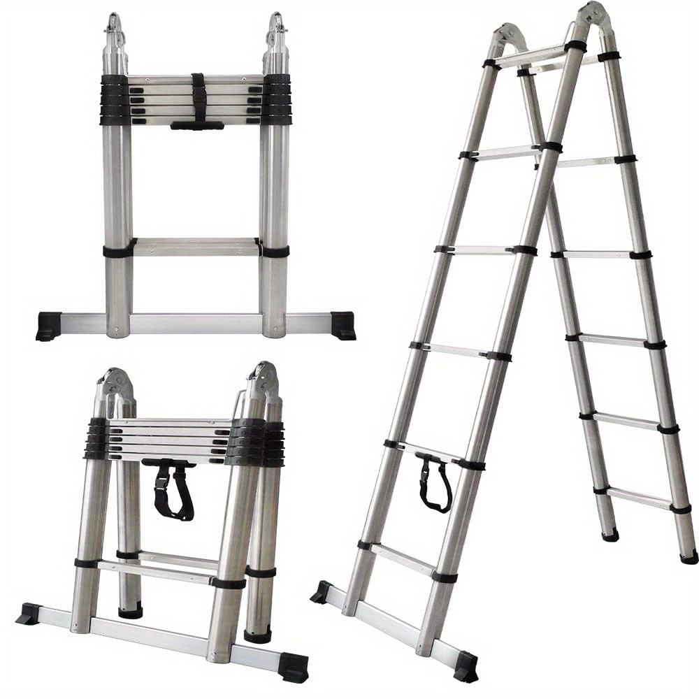 TEMU Aluminum 3.8m Telescoping Folding Step 3.8m Ladder 12.5ft 6 + Adjustable Height With Support Bar Anti-slip Feet Folded Height 2.7ft Space Saving Easy To Transport, Heavy Duty Rv Home Ladder