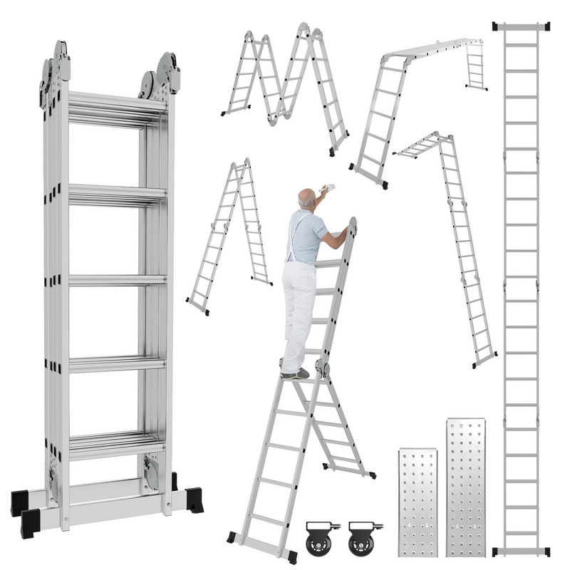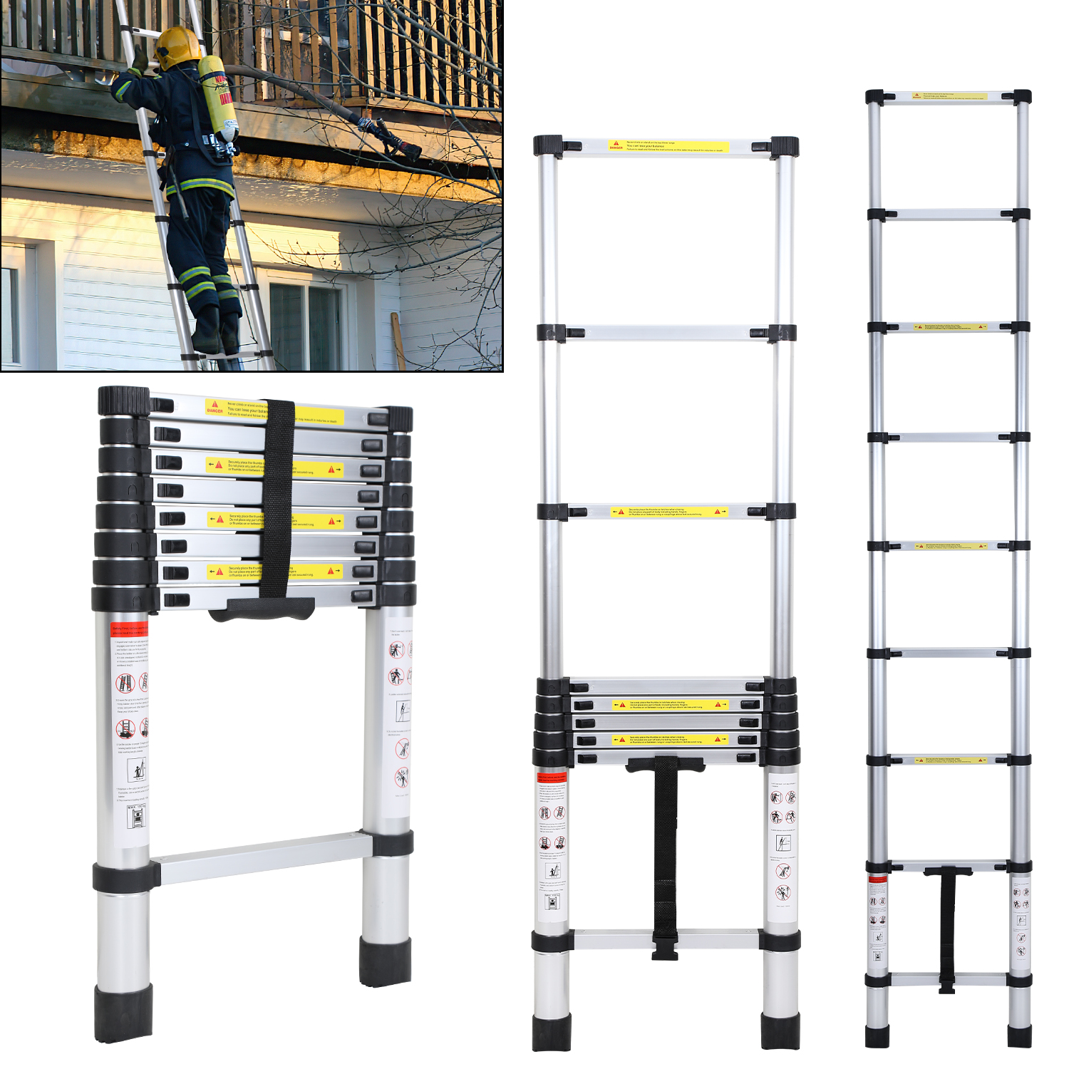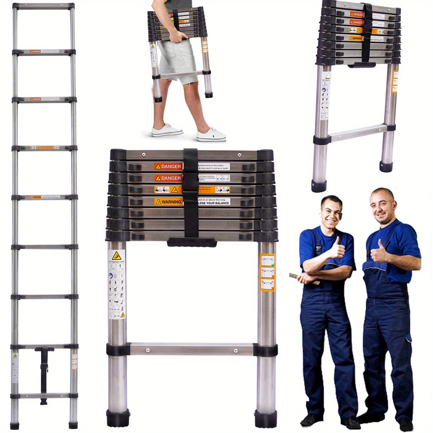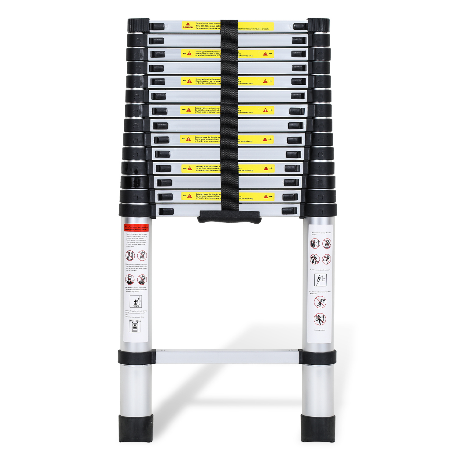 TEMU Aluminum 3.8m Telescoping Folding Step 3.8m Ladder 12.5ft 6 + Adjustable Height With Support Bar Anti-slip Feet Folded Height 2.7ft Space Saving Easy To Transport, Heavy Duty Rv Home Ladder