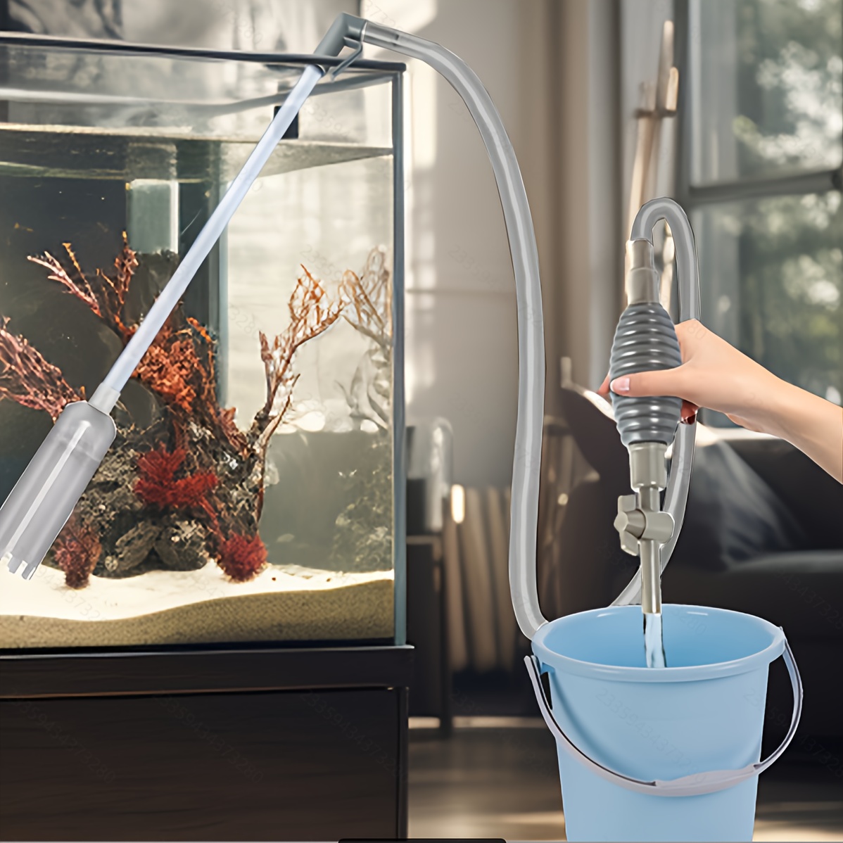 TEMU Aquarium Water Changer Tool, Semi-automatic Fish Tank Siphon, Sand Washer And Algae Scraper, Pneumatic Water Exchanger With Glass Scraper, Pipes, And Hose