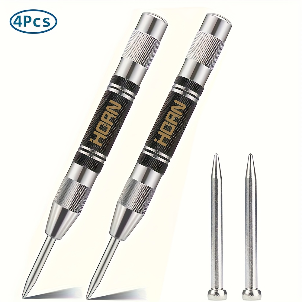 TEMU Automatic Center Punch, Includes 2 Extra Drill Bits - 12.7cm Heavy-duty Steel Spring Tool, Adjustable Tension, Rust-proof, Polished Head, Suitable For Metal, Wood, Glass - Black Metal Material