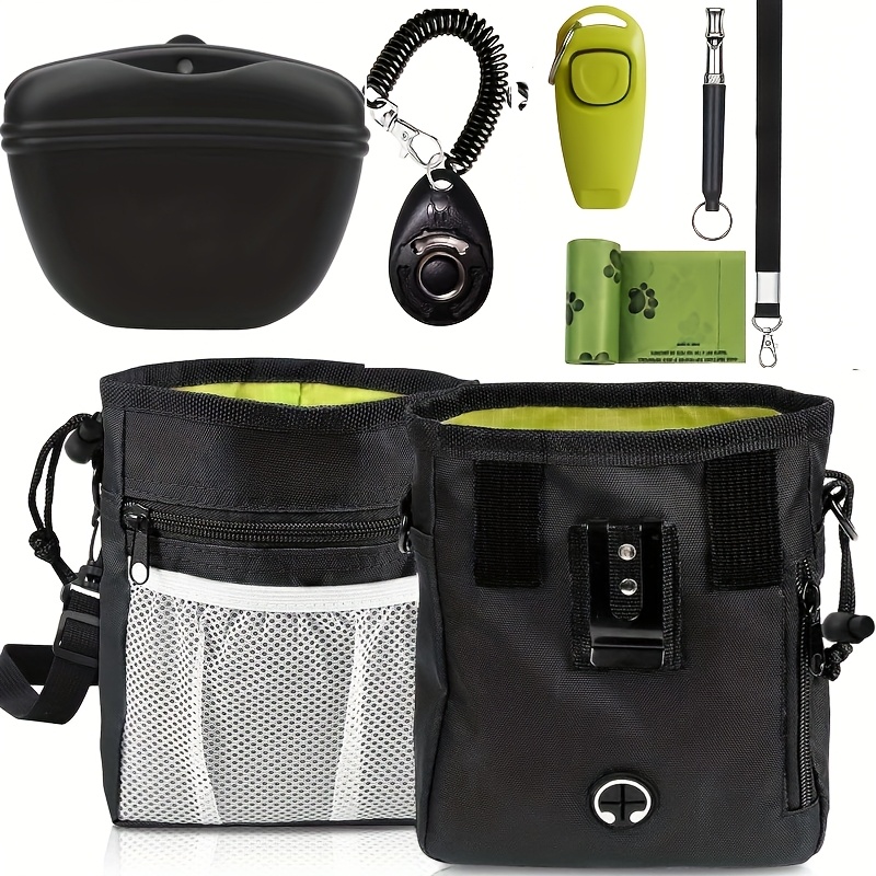 Product information for TEMU Automatic Closure Waterproof Dog Treat Pouch With Carabiner Clip - Durable Fabric Snack Bag For Training, Travel & (black & Green)